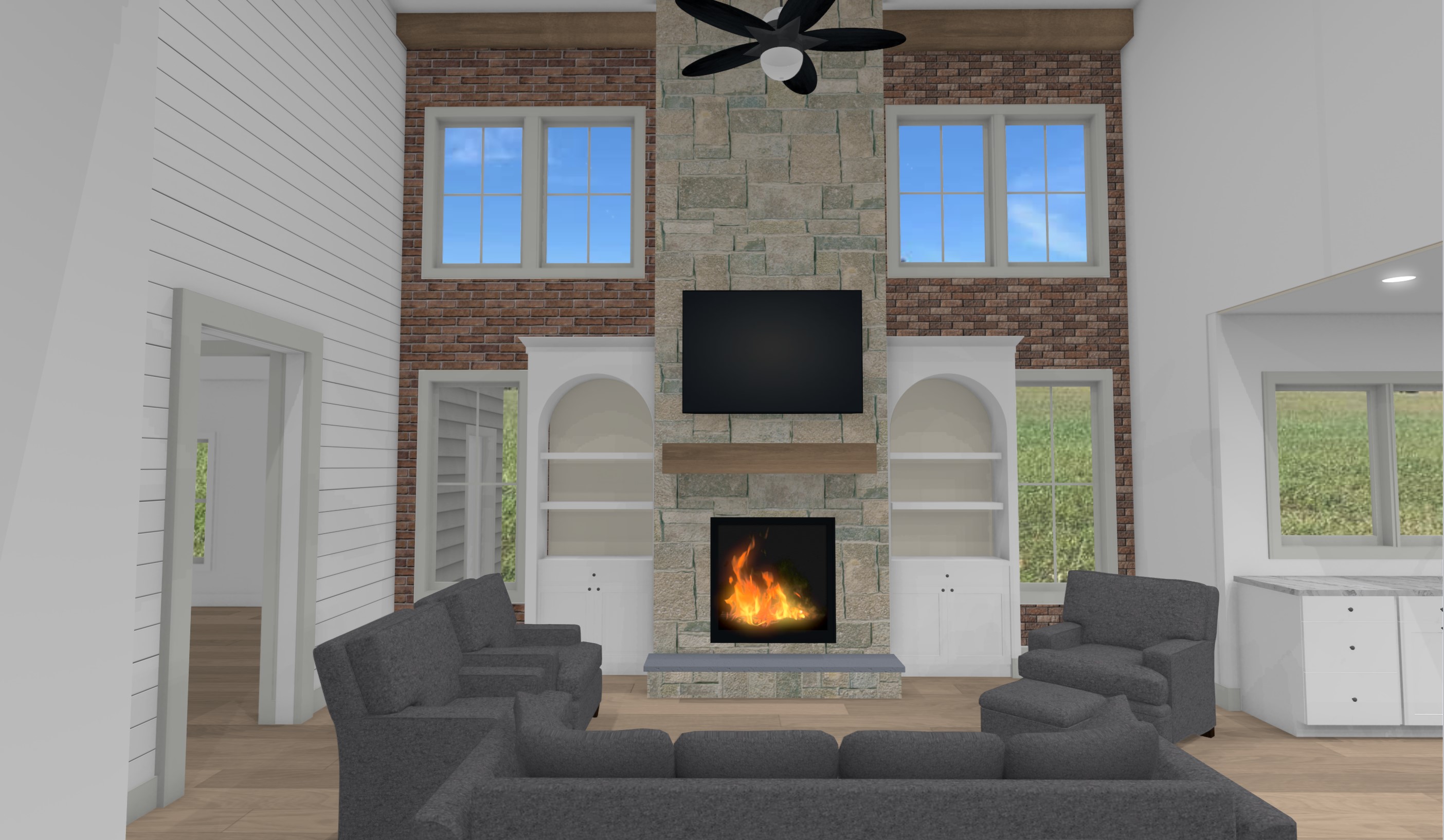 make this image a photograph and ass a sisal rug to center of the room add homey touches to the bookselves