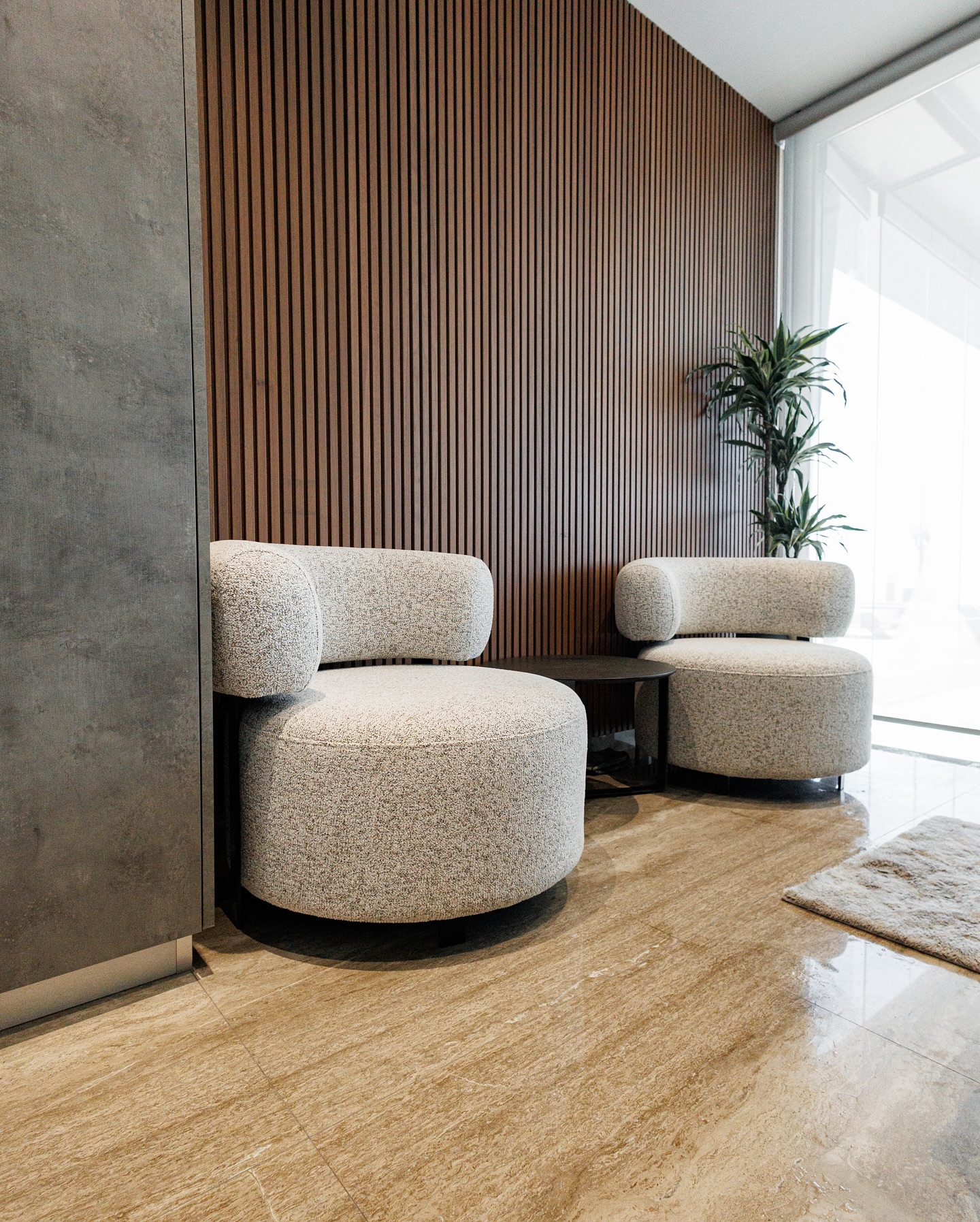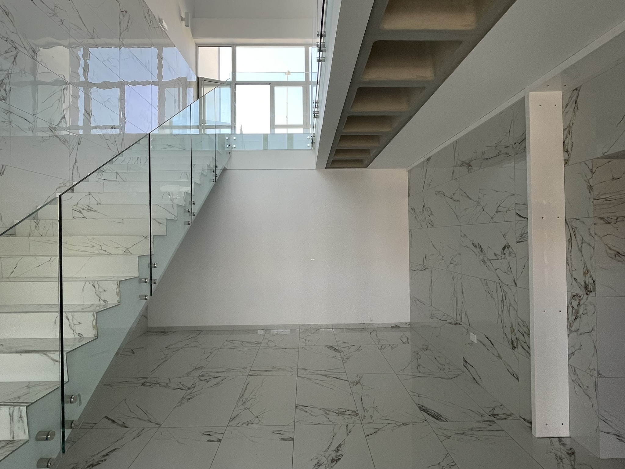 interior shot convert the white wall at the back as the image in the moodboard