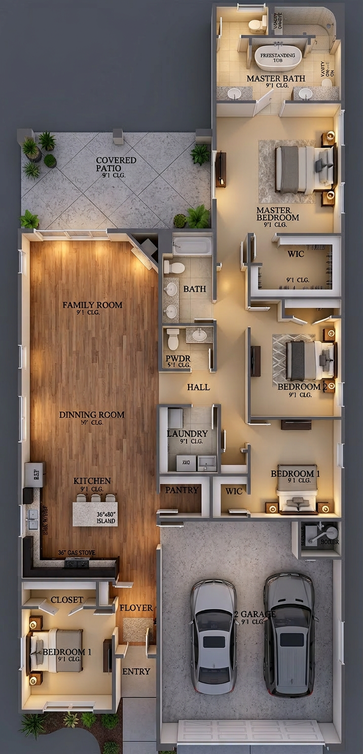 convert this floor plan into a realistic isometric 3d view of a full house show the space from an elevated angle with furniture walls and details visible generate beautiful precises isometric render with light inside and furniture use the same furniture as shows on the plan do not change the orientation of the floorplan