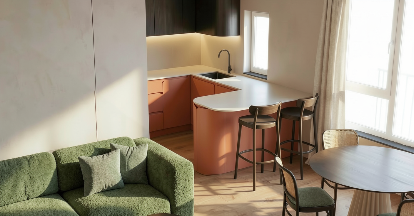 do not change the shape and volume of the building apply architectural concrete plaster in anthracite color on the facade add trees bright natural sunlight at 10 am soft realistic shadows blue sky with scattered clouds calm village atmosphere