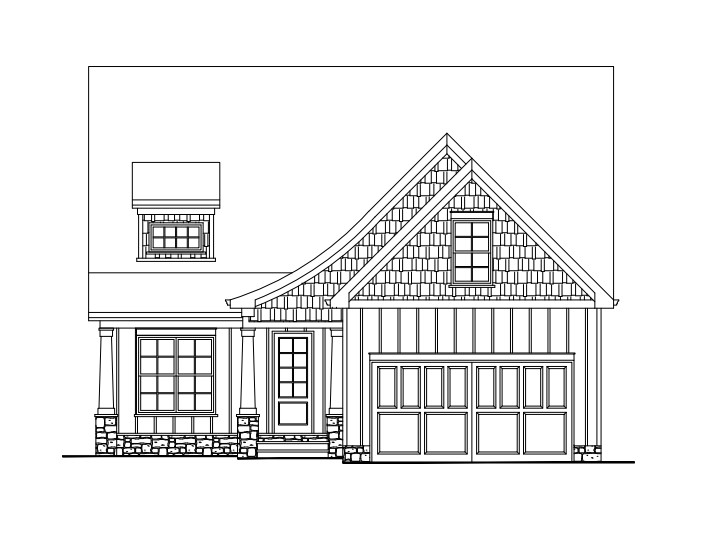 exterior shot convert this elevation into a realistic 3d exterior rendering choose a cohesive timeless color palette appropriate for the architectural style use complementary siding and roof tones with natural contrast add professional landscaping and realistic driveway balanced daylight lighting builder grade but clean and polished presentation maintain architectural accuracy preserve proportions do not alter structural layout