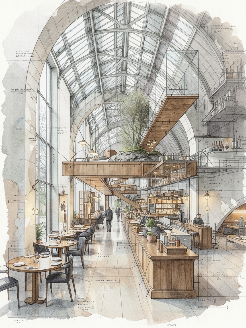 brick buildings are appartments with balconies red street is a pedestrian walk yellow is a car street make the scenery green in the back is a riverfront