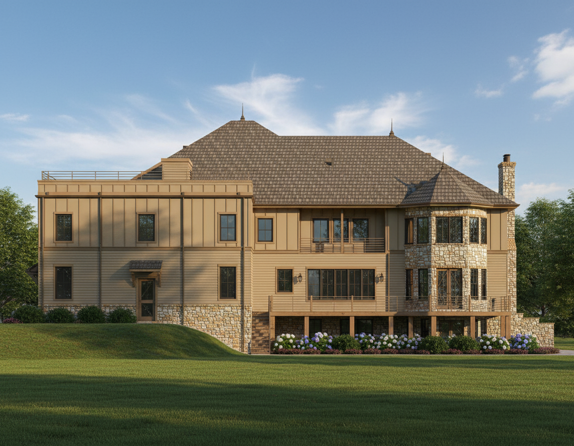 cape cod style home with dark charcoal shingled roof off white siding white windows with mullions in the top pane only white trim light wood stained entry doors with an ash toned stain white garage doors with a simple shaker panel concrete front steps to both entry doors add a wall light on both sides of both doors