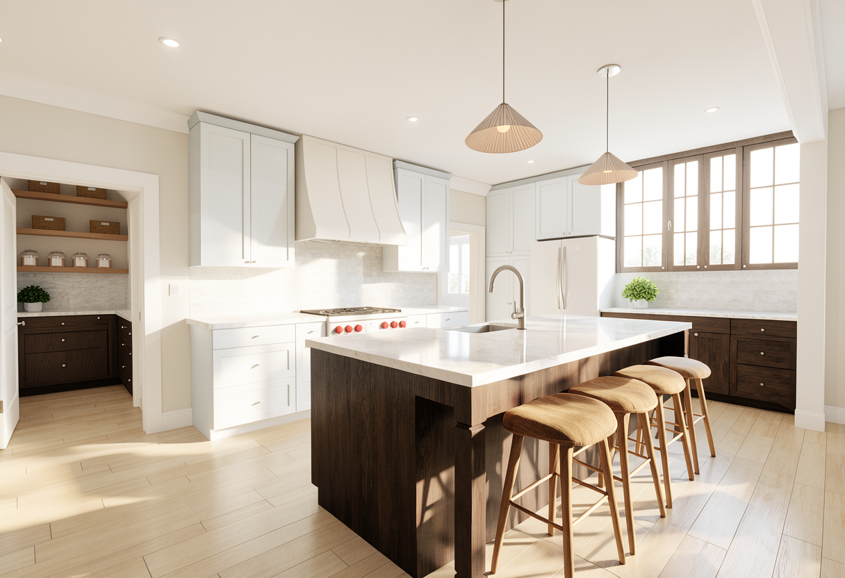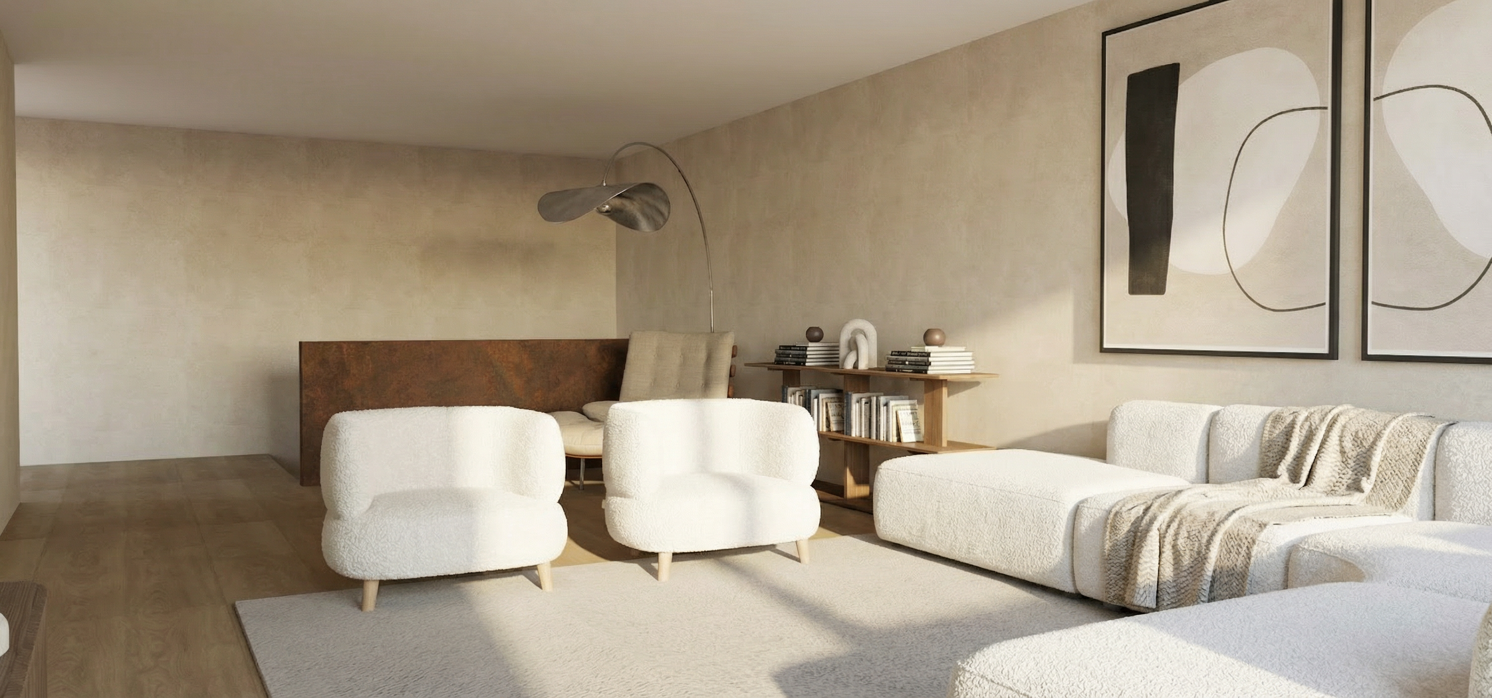 photorealistic interior render with soft natural morning light bright and airy atmosphere with evenly diffused daylight gentle shadows and balanced exposure true to material textures neutral whites and warm undertones calm serene mood with realistic lighting as if shot mid morning on a bright overcast day no dramatic contrast no harsh sunlight no stylization