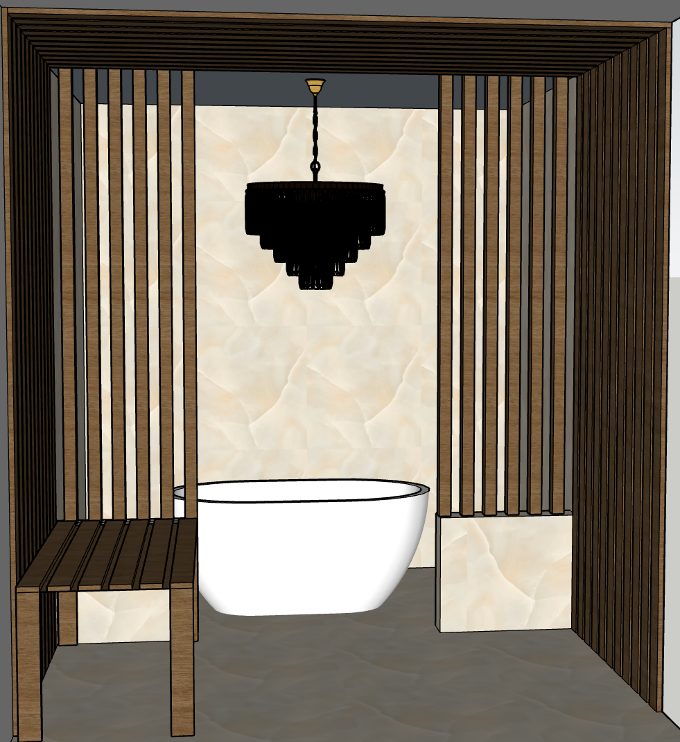 make the space with a spa ambiance remove window add soft glow ligth
