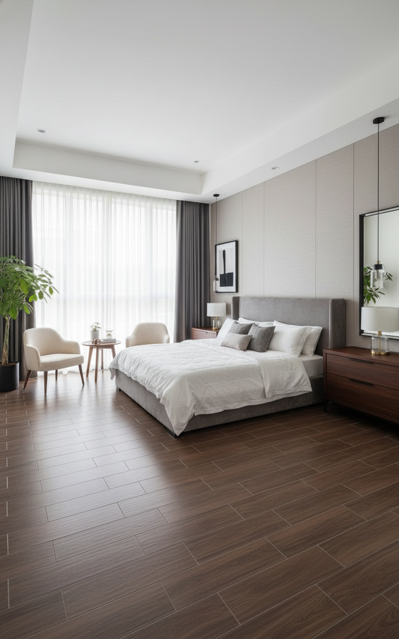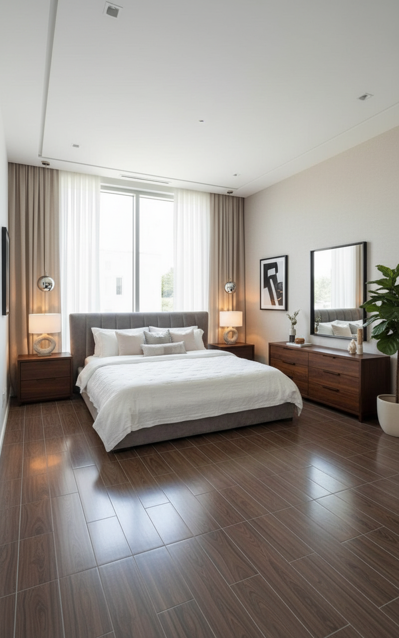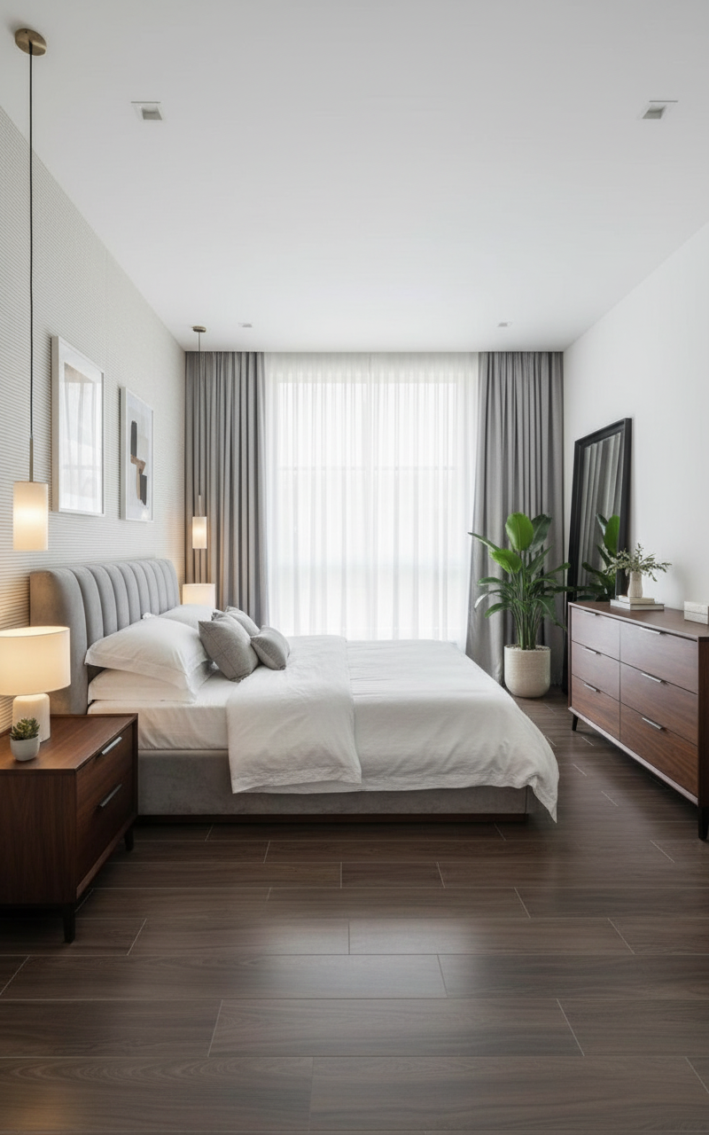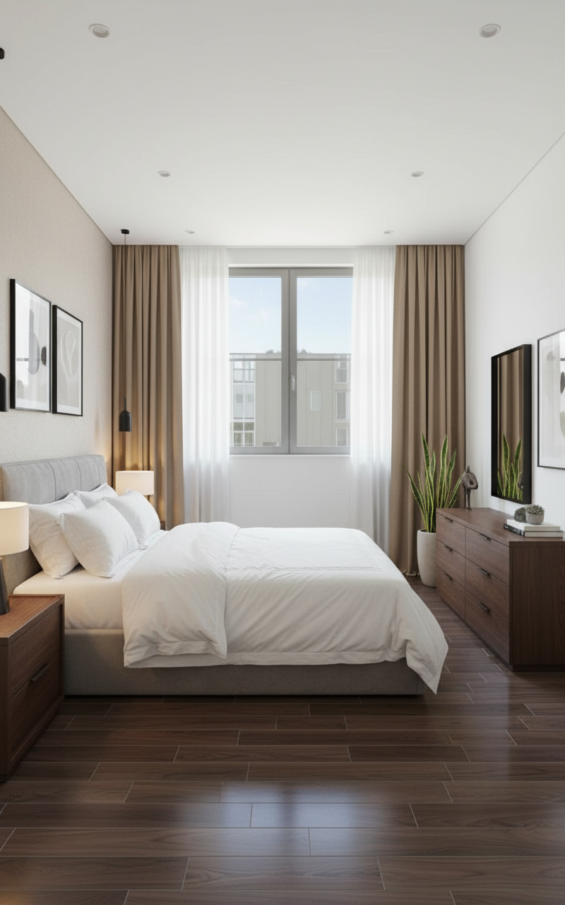 render the sofa with a caramel color velvet add graphic pillows in black and white to the sofa add light gray paint color to the walls add a medium scale graphic print to the roman shade window treatments the lamps are black bases with gold metal shades the chandelier is gold there is a large pop o shot to the right of the sofa the ottoman is walnut