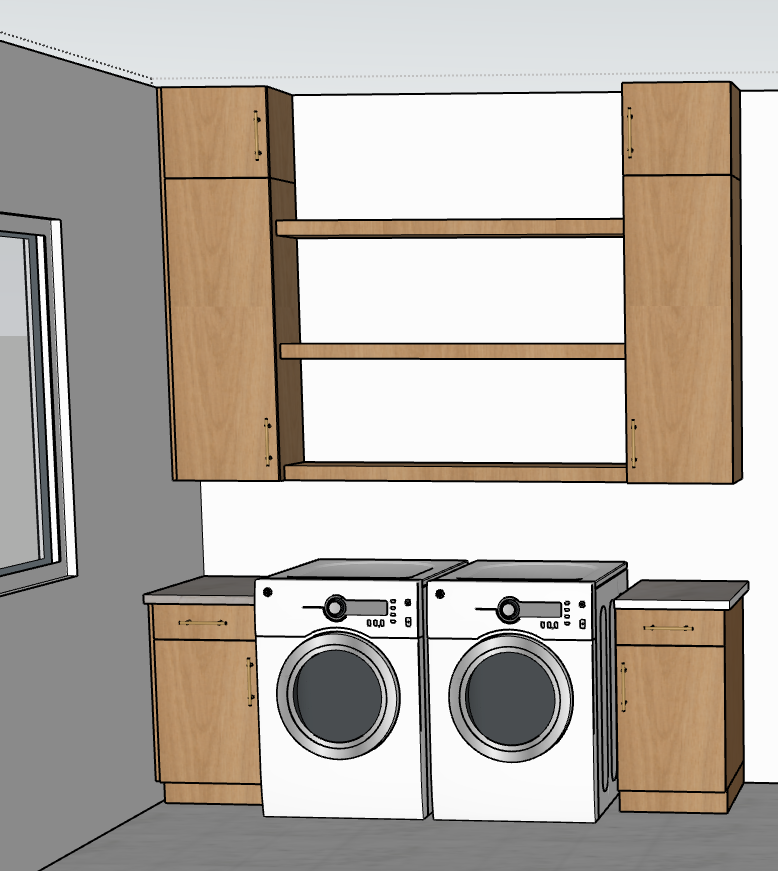 this is a beautiful laundry room with white oak cabinets the cabinet drawers and doors are slab style the uppers go all the way to the ceiling the countertops are made of taj mahal quartzite lookalike quartz warm white cream with gold and gray veining there s lots of natural light coming through the window on the left the floors are a beautiful white marble tile