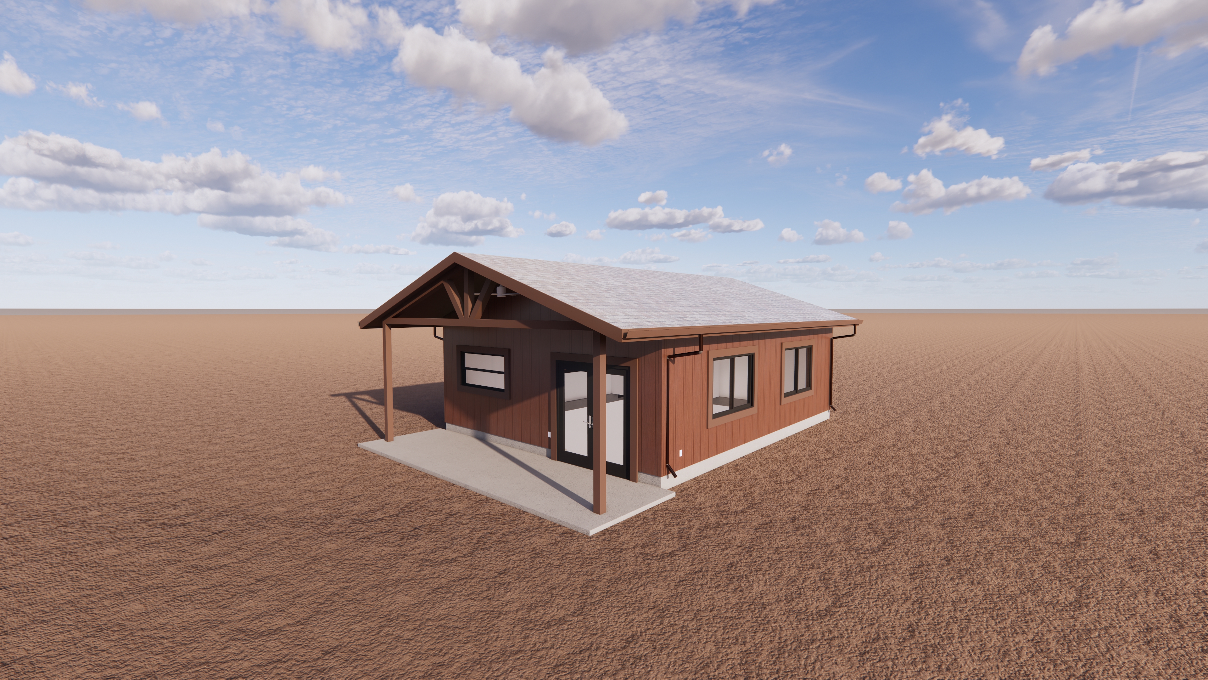 exterior shot dont alter the building just change the landscaping to be a rural northern california garden countryside