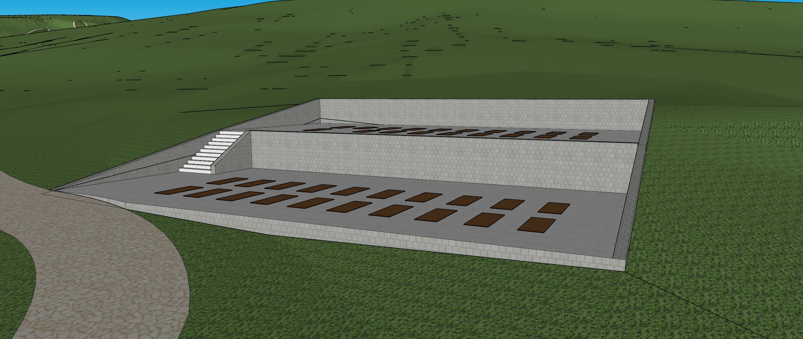 convert this screenshot into a hyper realistic architectural render of a two level outdoor yoga platform integrated into a dense metropolitan forest preserve the exact geometry of the two concrete platforms their heights the retaining walls and the staircase exactly as modeled surround the area with a dense forest of native trees but ensure tree trunks are scaled appropriately natural proportions not oversized consistent with realistic forest growth and human scale add lush greenery ferns shrubs and slightly wild undergrowth around all edges of the platforms use light grey textured architectural concrete for platforms stairs and retaining walls the yoga mats should remain in the same positions and proportions reinterpreted as natural fiber mats in warm earthy tones the walkway leading to the area must become a rustic stone paved path empedrado with irregular stones embedded in the soil it is very important to keep the exact orientation and curvature of the walkway do not modify rotate or realign it only enhance its material lighting bright daytime lighting mid morning with clear illumination to avoid dark forest shadows light should filter through the trees naturally maintaining the bright fresh atmosphere seen in the zumba area style ultra realistic editorial aesthetic consistent with the forest wellness park high detail in vegetation textures shadows and materials maintain the original camera angle no people