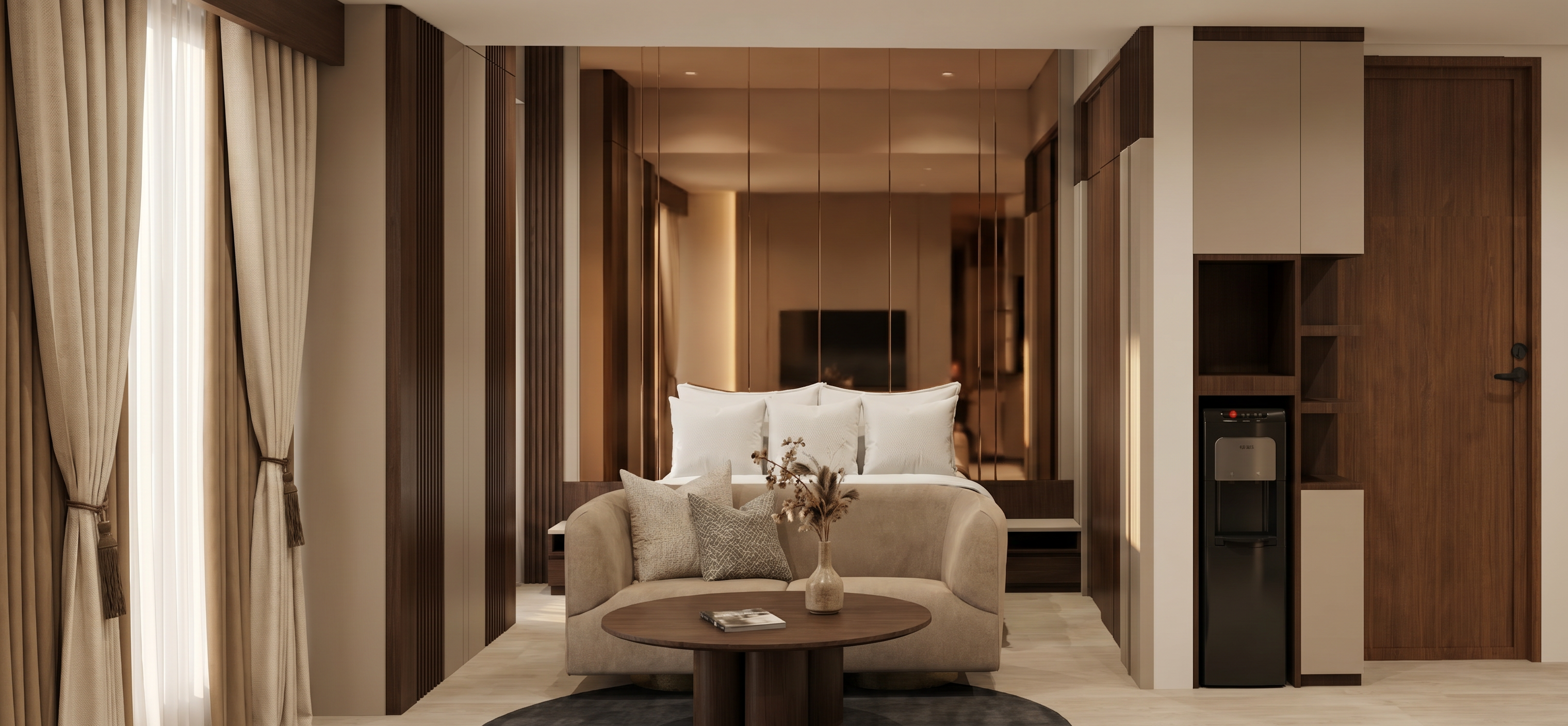 make a photorealtic render with the same materials make the red block a minimalistic painting in the same tones