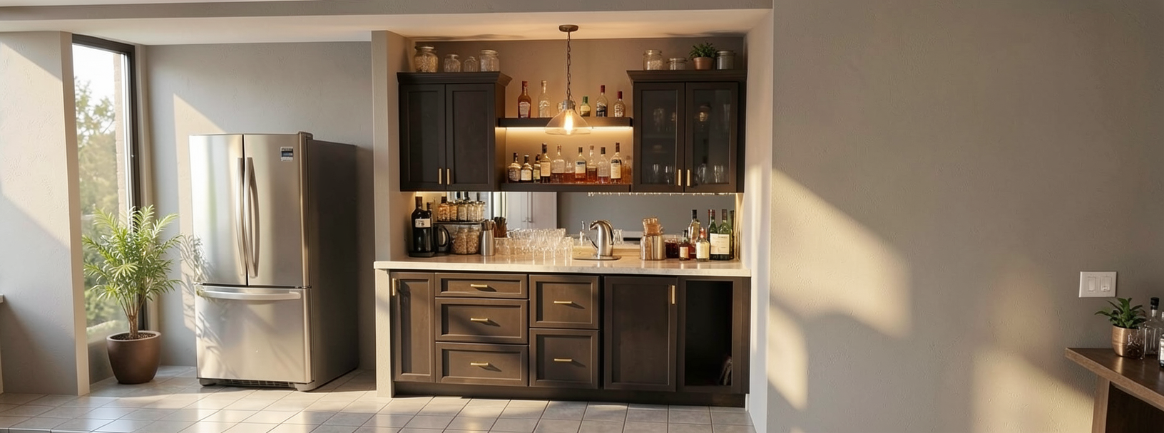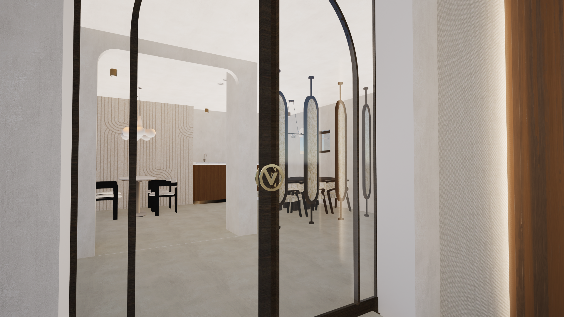 add realism add light to the pendant lights add light to the spots that are visible in picture make wood texture on door verticle round edges of metal door handle and make slightly worn gold make sure to keep the door handle design the same