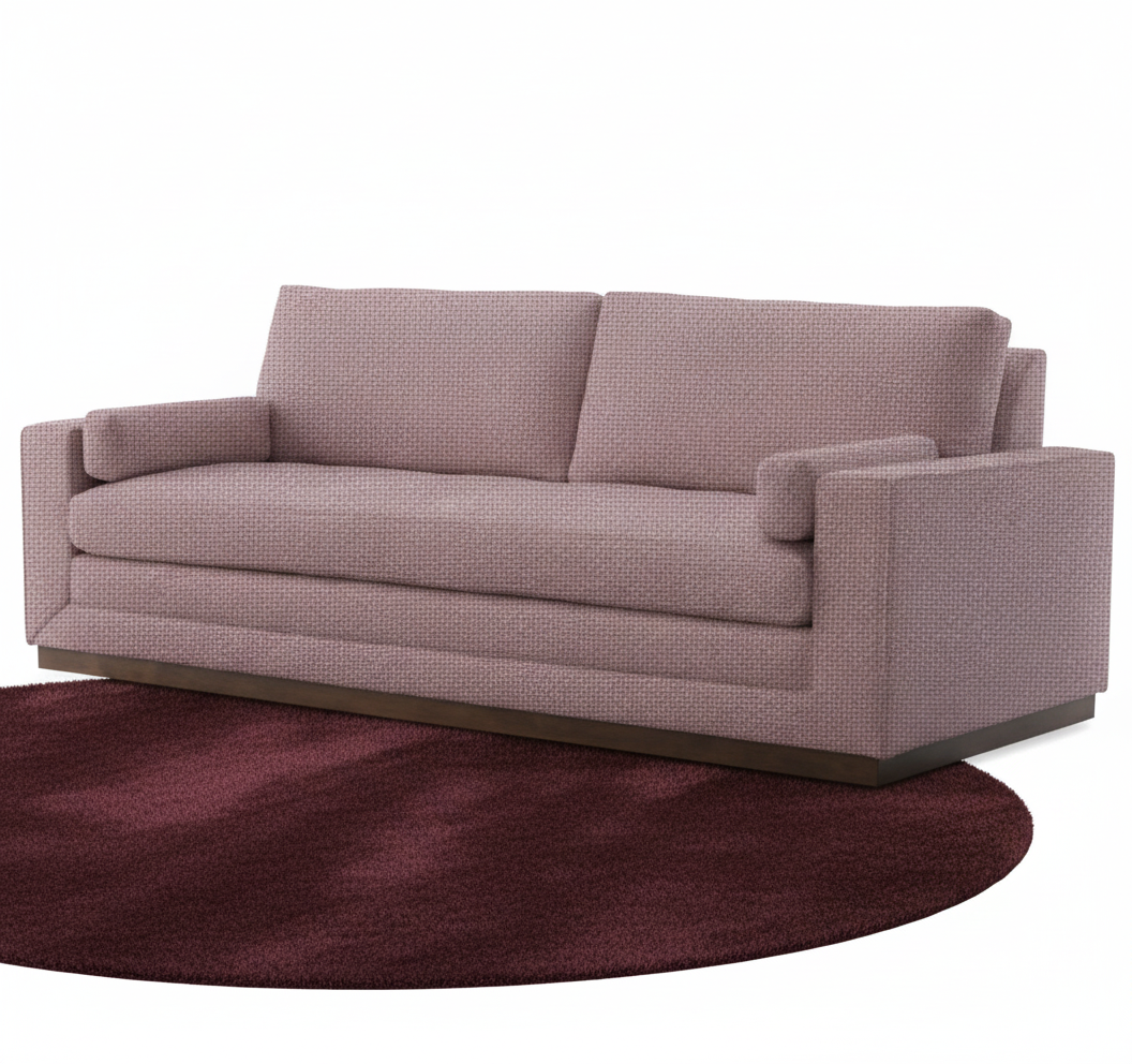 change white couch fabric to the color and texture or reference picture add and oval rug underneath couch in the darker reference picture color and texture slide rug further back under couch make rug bigger