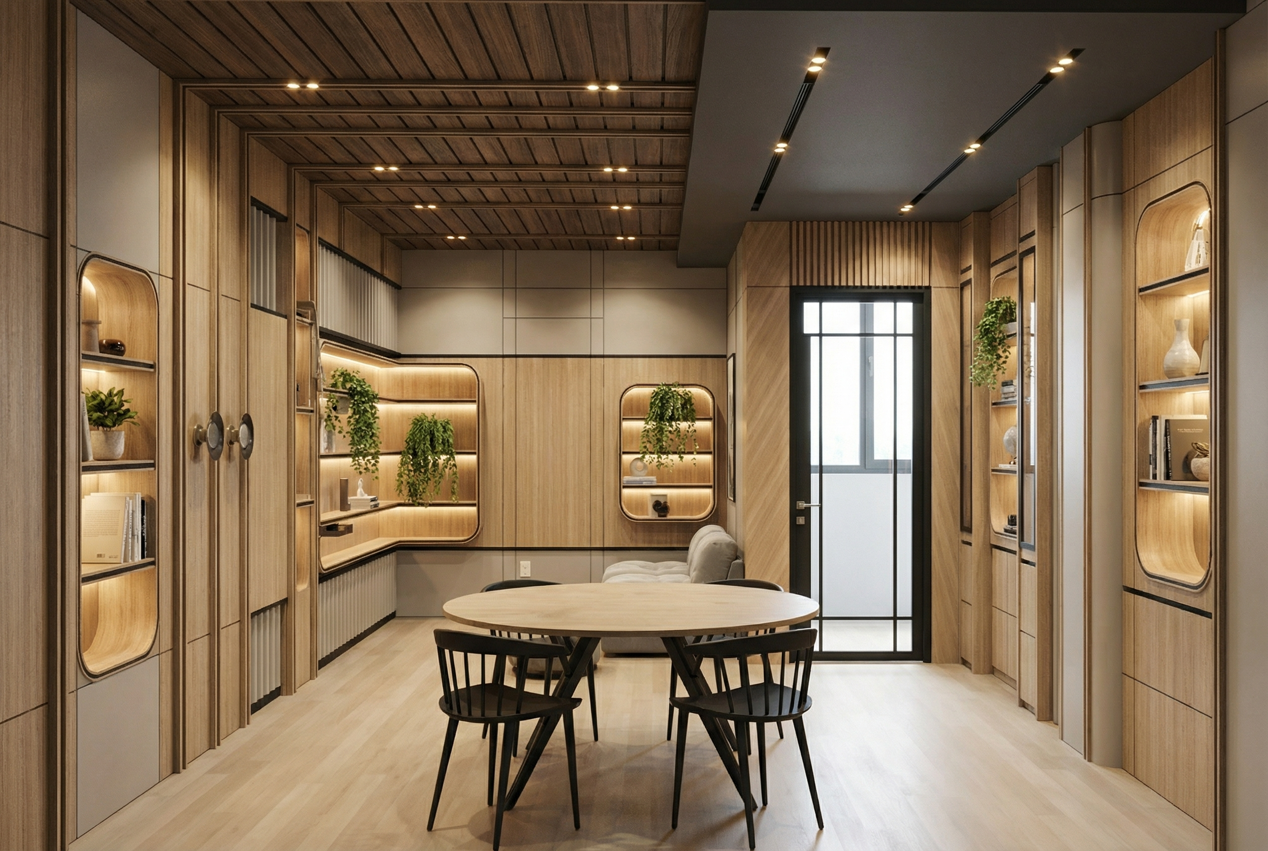 do not change or modify any material or design kepp wood color same just do render more realistic like 3d visualizer
