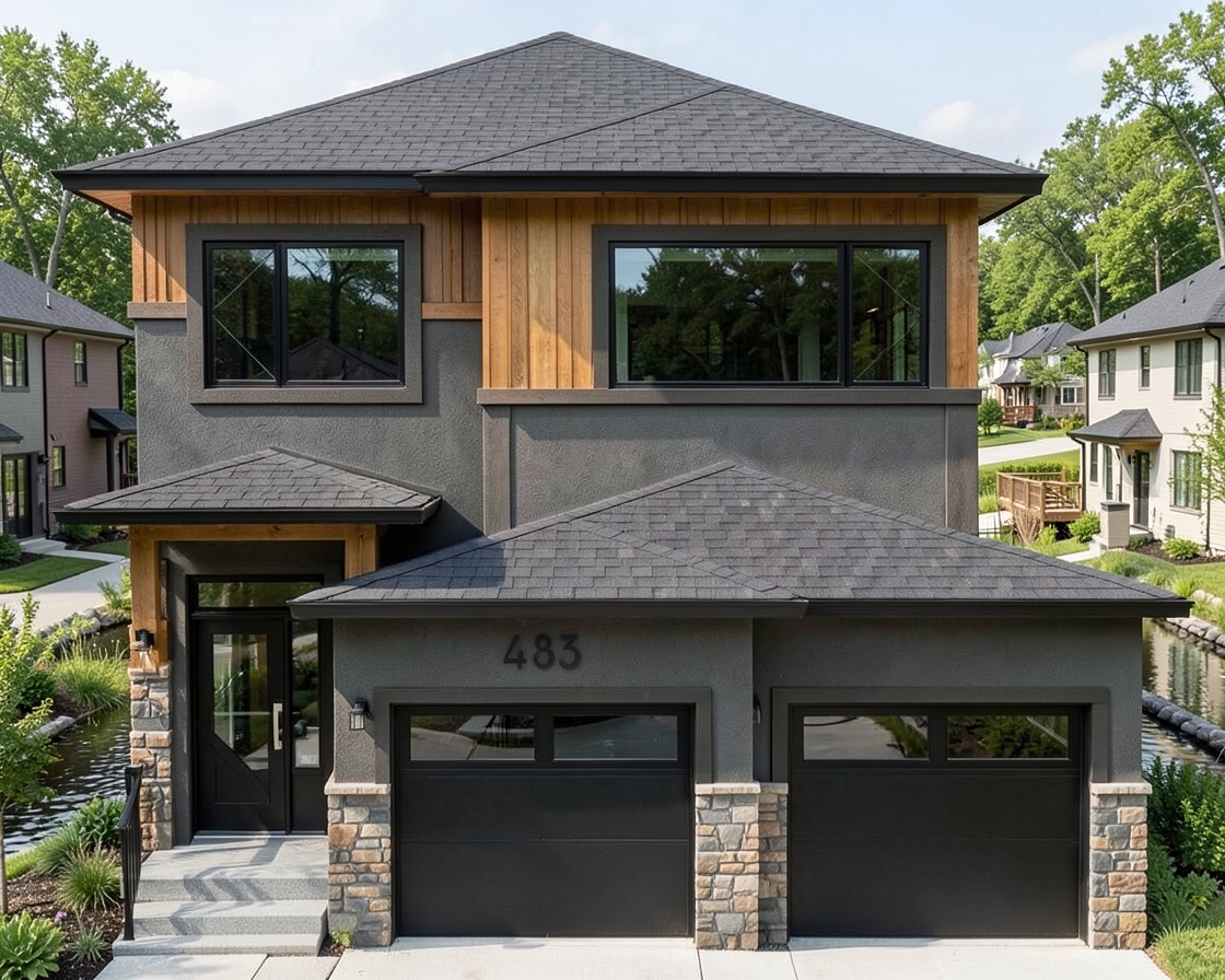 retain building design improve global illumination natural color enhance water body with subtle water wave amplitude dramatic water reflection slightly greenish lake water color photorealism