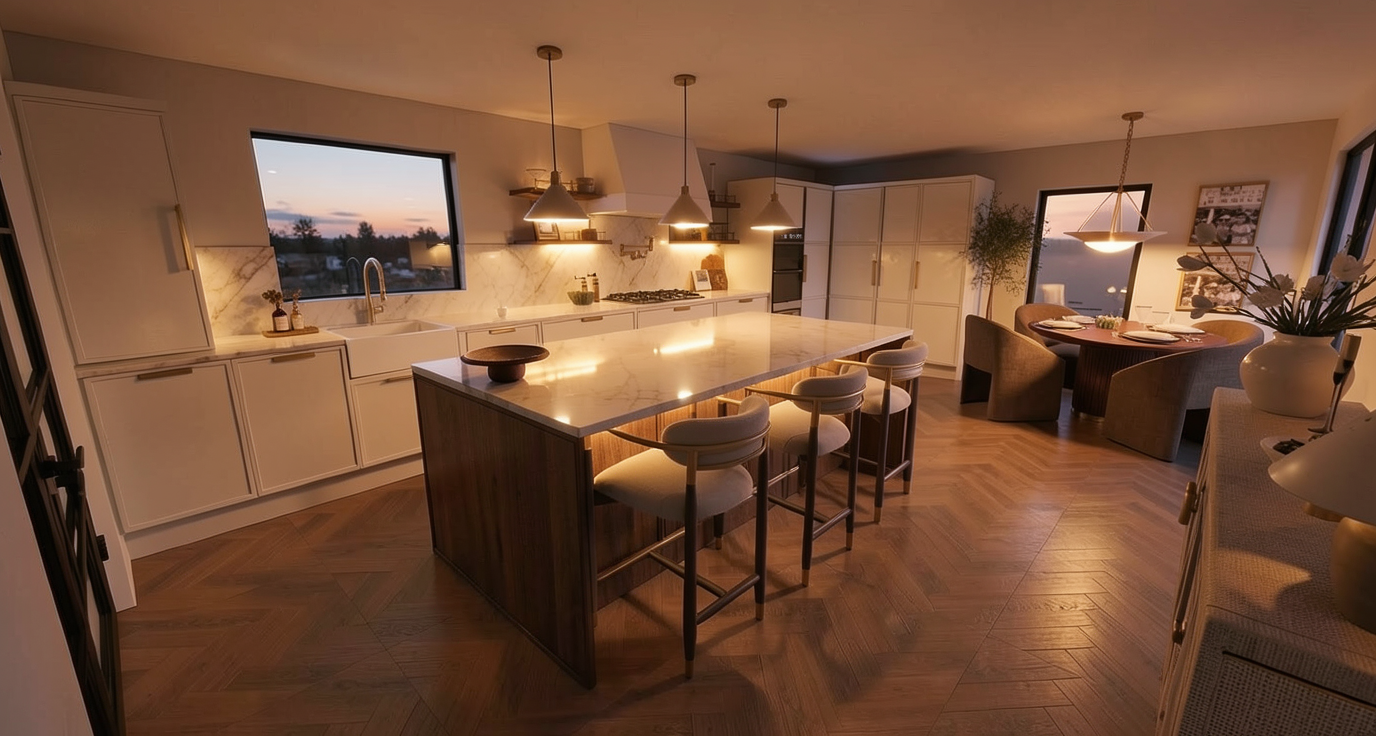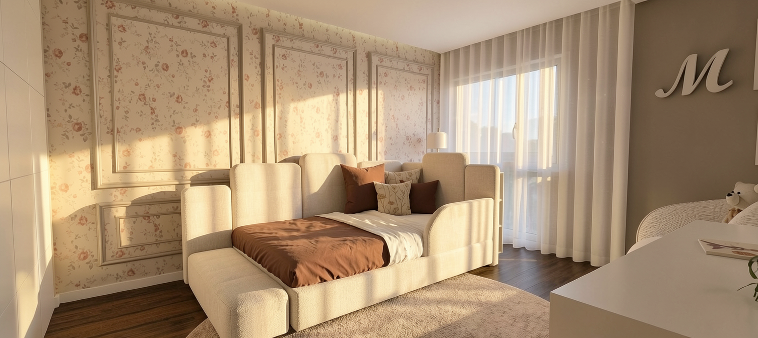 transform the uploaded architectural floor plan into a high quality 2d rendered floor plan the result must remain strictly top down orthographic view 2d only no perspective no isometric view no 3d angles apply the same materials textures color palette and lighting style from the provided reference image ensure that all surfaces floors walls finishes match the visual style of the reference furnish and decorate the space by replicating the furniture style object types layout logic and decorative elements seen in the reference image maintain consistency in scale and placement according to the original floor plan enhance visual quality with clean rendering soft shadows only if consistent with 2d style and clear material definition while preserving the flat 2d look key requirements strictly 2d top view only no perspective or isometric rendering match textures and materials from reference image match furniture and decoration style from reference image maintain original layout and proportions of the plan clean realistic high resolution architectural visualization