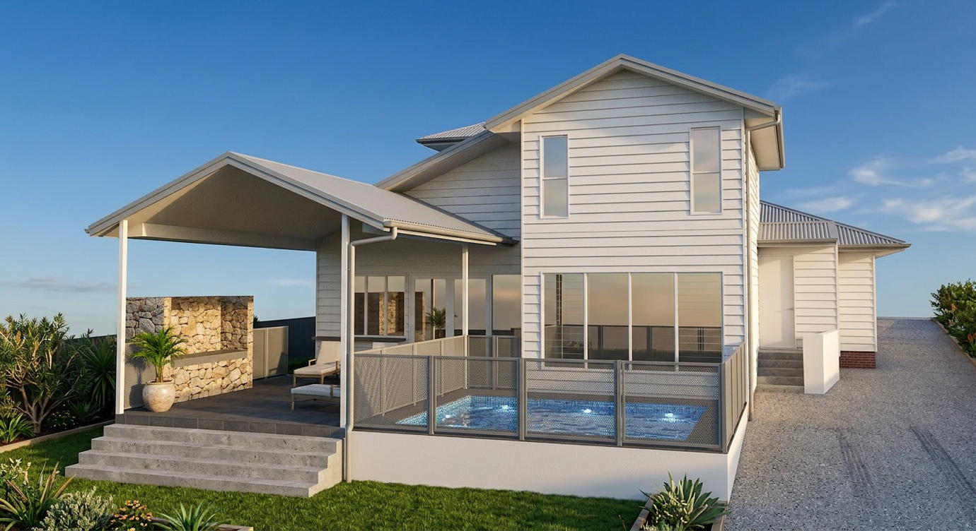 small planter retaining wall around the perimeter pavers under the covered patio turf