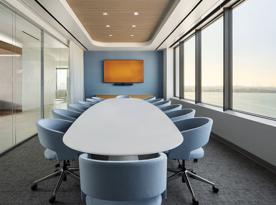 change the back wall to a light cement gray now make the chairs royal blue
