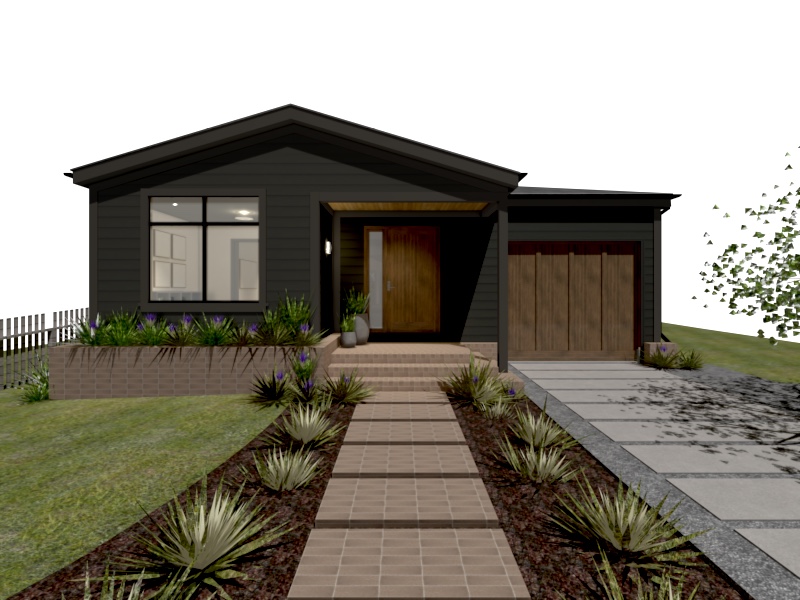 replace the brick with a natural and deeper earth toned brick ensure the wood front door and wood garage door are identical vertical grain white oak wood textures