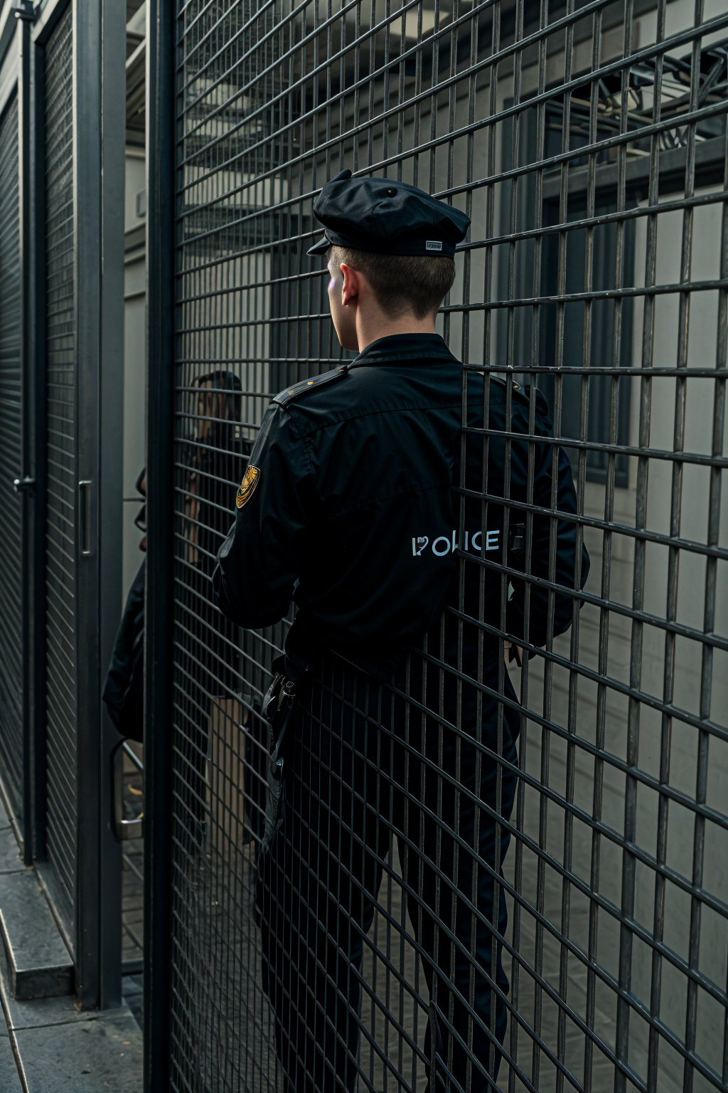 remove the bars from this photo and leave only the policeman from behind