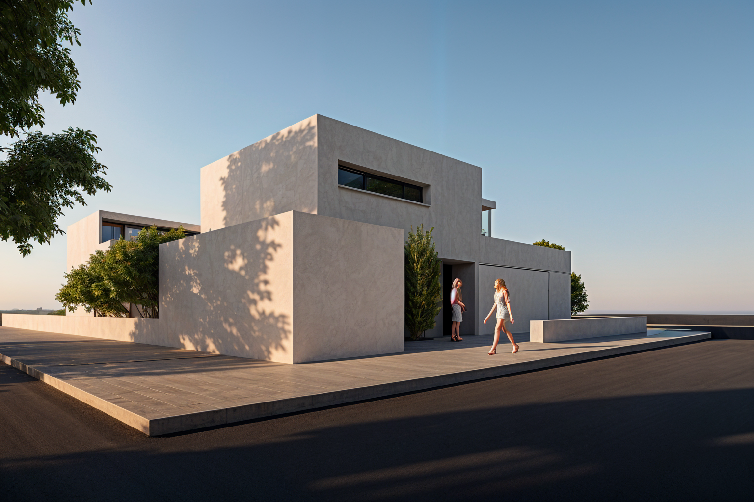 photorealistic architectural rendering of geb udebeschreibung shot on phase one xf iq4 150mp medium format camera 85mm tilt shift lens f 8 aperture iso 100 lighting golden hour sunlight 4 30 pm late september sun angle 22 degrees from horizon southwest direction soft diffused shadows with penumbra edges ambient occlusion in recessed areas and underhangs sky partially overcast with volumetric clouds hdri environment map 12 000k color temperature in shadows materials concrete brushed grey board formed concrete micro surface imperfections water stains at joints subtle moss at base subsurface scattering glass low iron triple glazing 8 reflectivity interior warmth visible slight condensation bottom edge steel weathered corten oxidation gradient from top to bottom surface pitting at 0 3mm depth wood fsc larch cladding uv greyed patina visible grain end grain darkening oil finish sheen atmosphere morning dew on horizontal surfaces ground level mist at 0 4m height realistic sky with cirrus clouds lens flare at sun position subtle 4 opacity environment surrounding context mature oak trees leaf stage early autumn realistic root heave in pavement puddles reflecting building facade parked cars with motion blur pedestrians with natural motion blur at 1 60s shutter equivalent camera post depth of field sharp from 8m to 40m foreground bokeh chromatic aberration 0 3px film grain iso 100 equivalent slight barrel distortion color grading neutral with lifted blacks 15 slightly desaturated 10 clarity teal shadows warm highlights split tone render engine path traced 4000 samples minimum denoising intel open image denoise output 8000x5333px 16 bit exr style reference hufton crow architectural photography iwan baan edmund sumner ar 3 2 v 6 style raw q 2