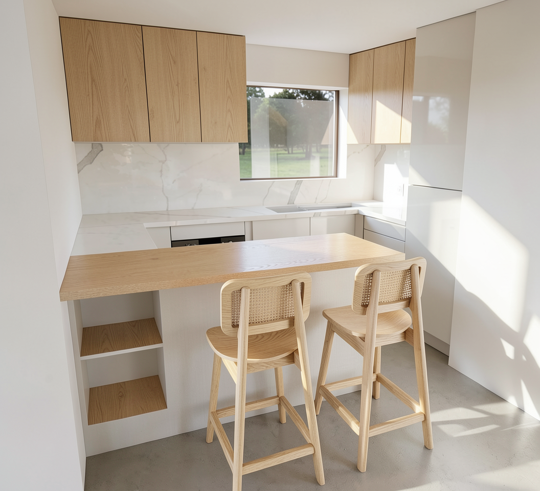 do not change the cabinets in any way preserve the exact cabinet colors materials finishes dimensions door and drawer styles hardware spacing alignment and all geometry exactly as shown do not alter the countertop shape backsplash appliances flooring lighting fixtures or wall structure only remove the construction materials clutter and mess from the scene clean the room and make it look finished and staged add a few simple tasteful home accessories appropriate for the style of the space but do not add or remove any furniture windows or architectural elements maintain the original lighting direction and realism enhance clarity and polish the photo while keeping the cabinetry and room design completely unchanged do not alter the lighting to keep the cabinet colors as they are in the image re stage for a butler s pantry put a nice view in the window do not change the cabinet color at all