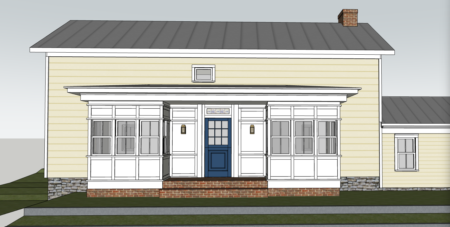 scene use input image to generate the exterior of a small eyebrow colonial in the hudson valley nestled in a woodland setting view massing and exterior should match input image time of day lighting late afternoon in the summer warm and soft with gentle volumetric light filtering through trees subtle shadows and highlights for depth and atmosphere materials textures photorealistic painted clapboard wood siding aged stone foundation glass windows reflecting soft sunlight natural tactile finishes that feel lived in composition atmosphere painterly atmospheric nostalgic slight depth of field for softness emphasize warmth timelessness and a sense of memory include natural landscaping like moss tall grass and wildflowers optional human scale cues worn path simple wooden rocking chair bicycle or other subtle details mood style inviting lived in immersive photorealistic base with painterly touches evokes nostalgia optional keywords for ai engines photorealistic atmospheric painterly golden warm lighting tactile textures nostalgic soft depth of field cinematic composition