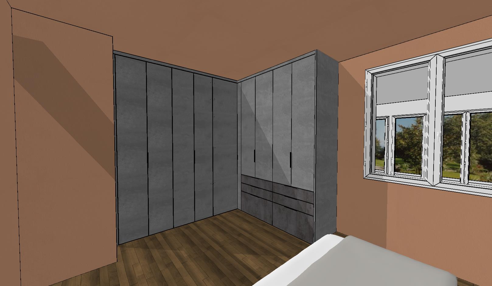 conserve les couleurs et textures mat et ajoute des spots au plafond et de la d co sur le mur de gauche