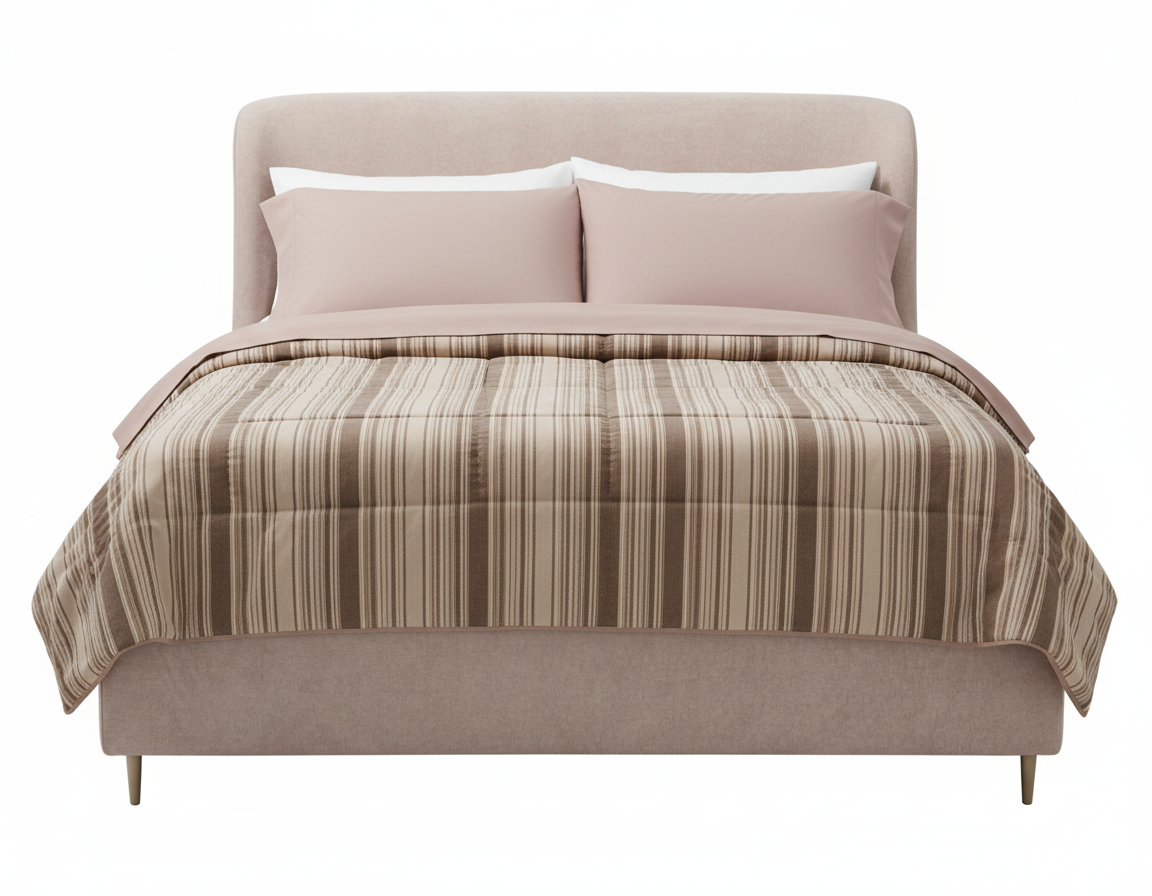 style this bed with rose pink bedding in a couple different shades keep the view of the bed straight on make the background white