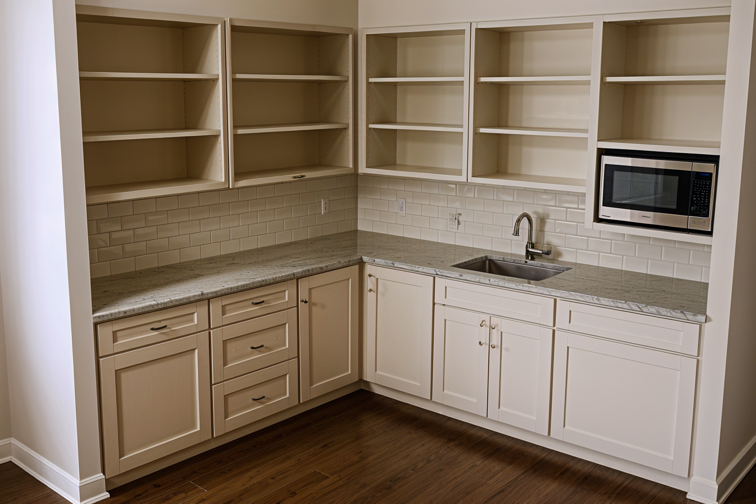 a manicured lawn layered flower beds low maintenance shrubs native plants stone pathway leading to the entrance fille parking lot with different vehicles show the three ponds in the landscape