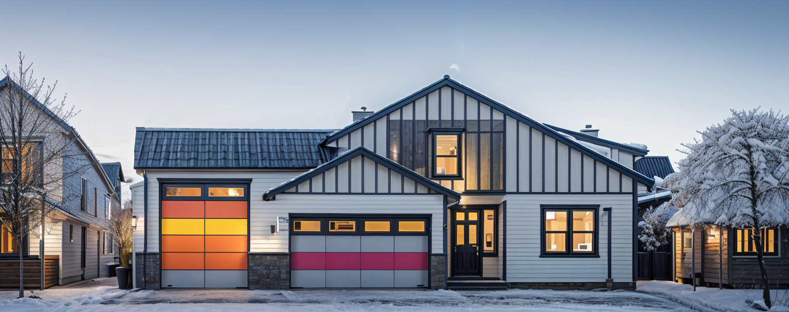 mountain modern with timber corbels in each gable add black shutters on the upstairs window