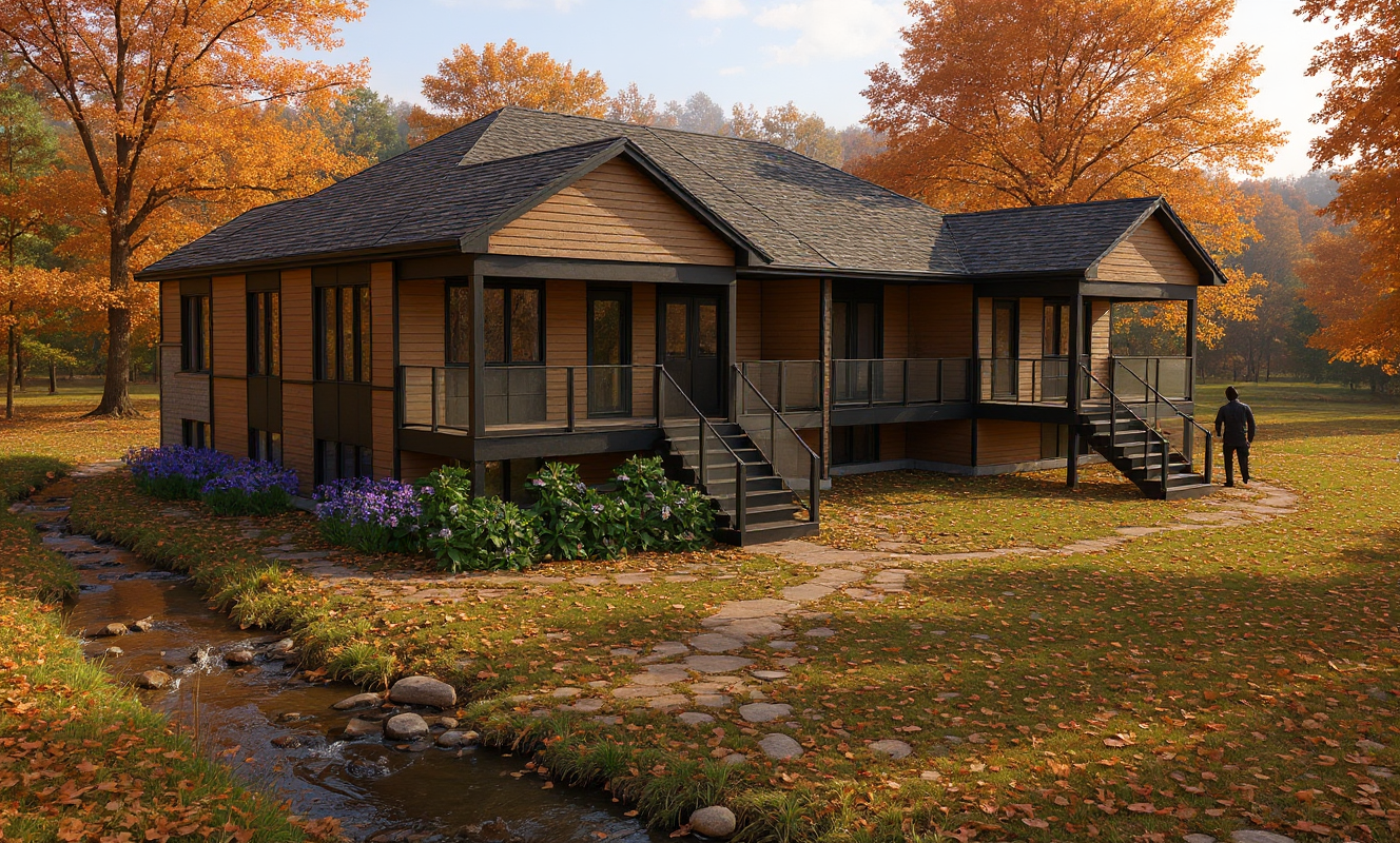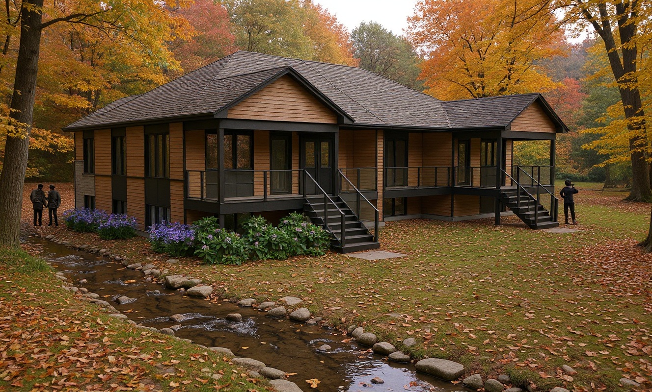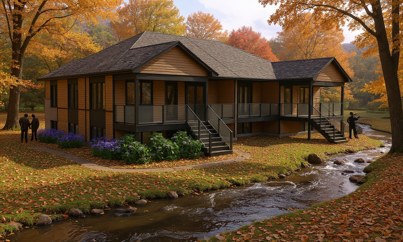 tan brick and limestone exterior with cherokee red window frames fascia and doors open porte chochere is on right side