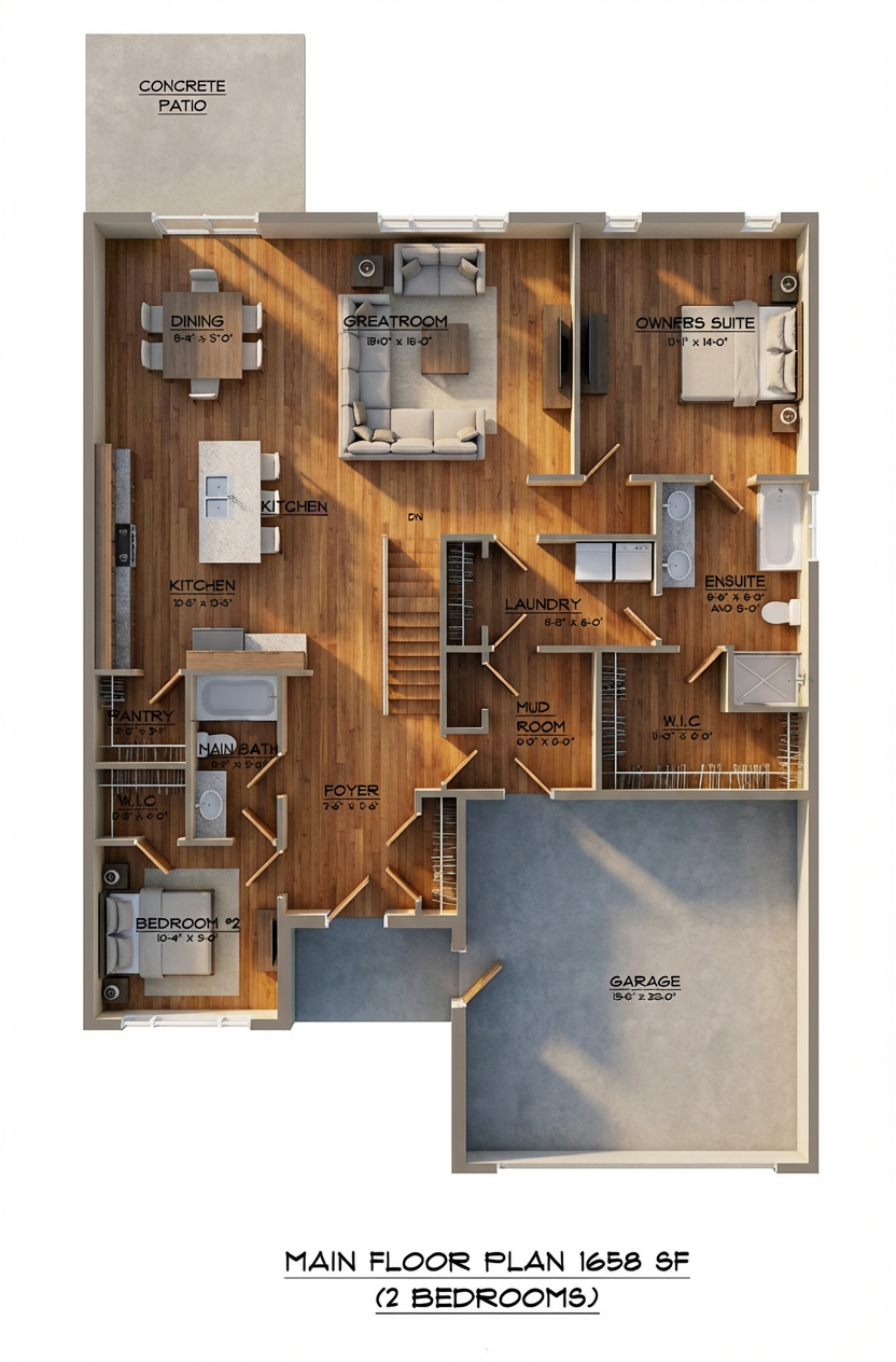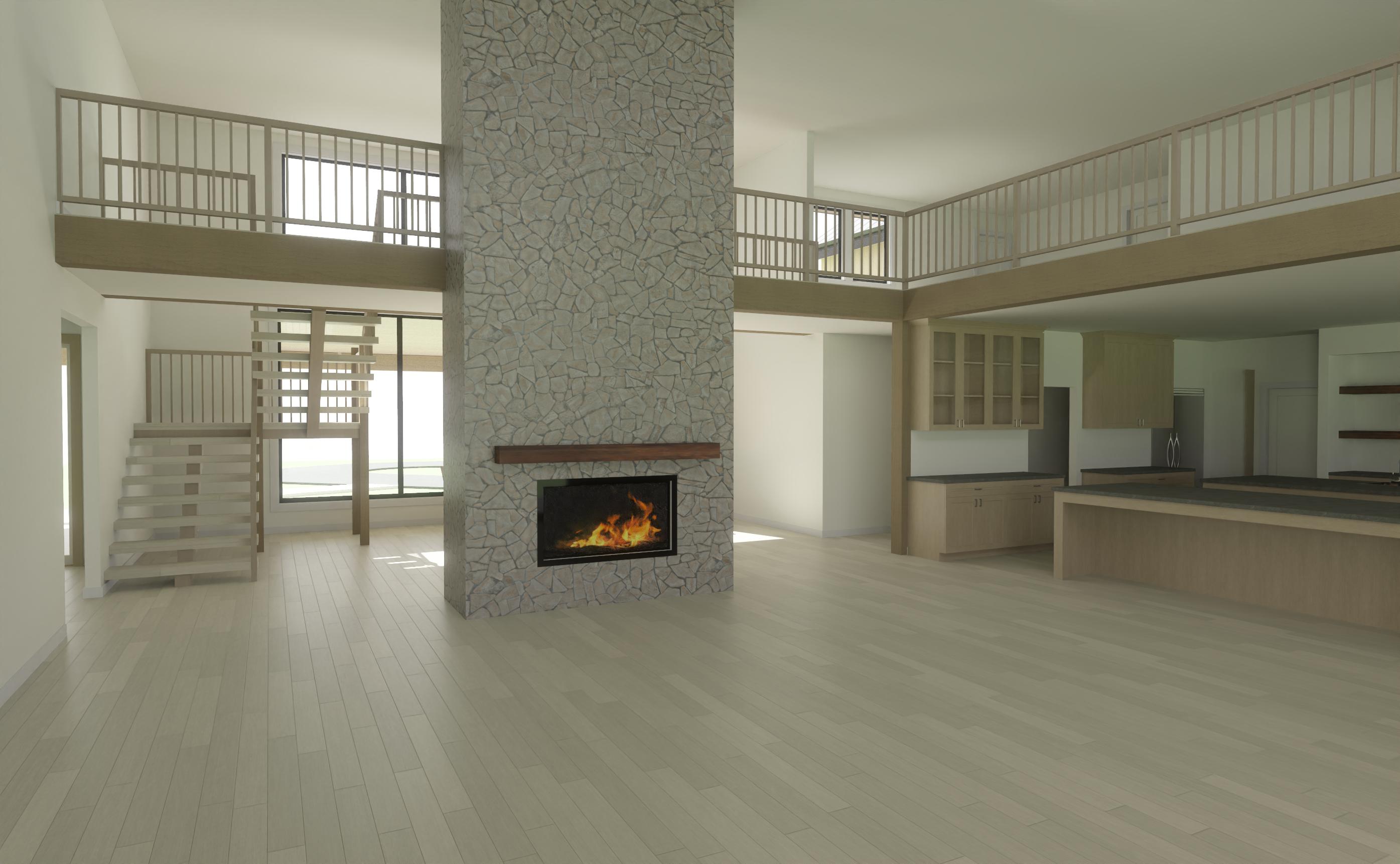 do not change sizes or shapes modern warm minimalist interior open living space wide plank white oak flooring soft natural sunlight casting long shadows across floor black steel framed glass partition wall floor to ceiling glass panels with thin mullions neutral color palette creamy white walls light taupe curtains contemporary living room with low profile white sofas warm wood floating shelves with minimal decor plaster fireplace with simple mantle soft ambient lighting large potted indoor tree clean lines high end residential design scandinavian modern aesthetic ultra realistic architectural visualization 8k detail exterior views are western montana