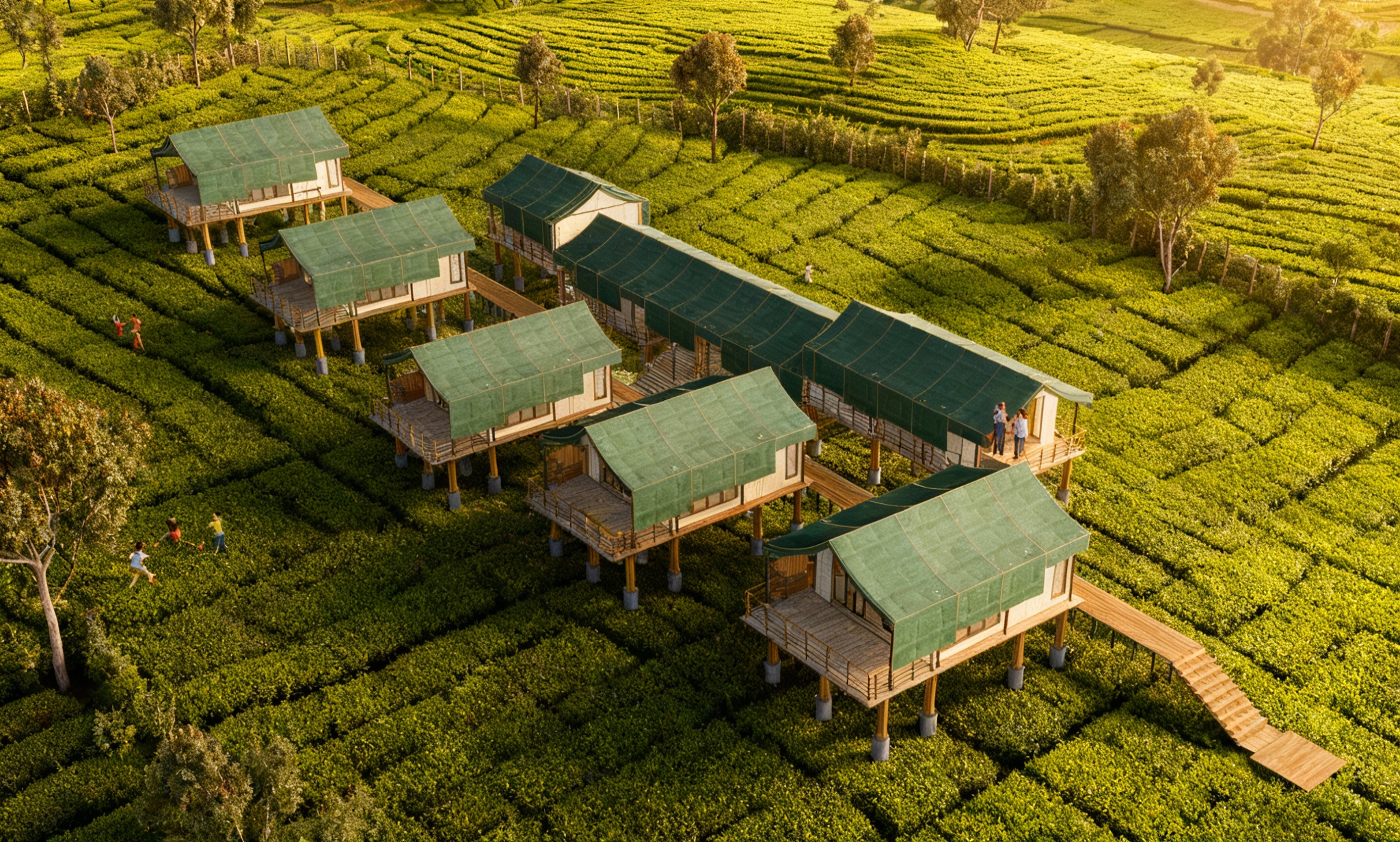 add a stone path have the end looking out to a mountain cliff view while maintaining original geometry