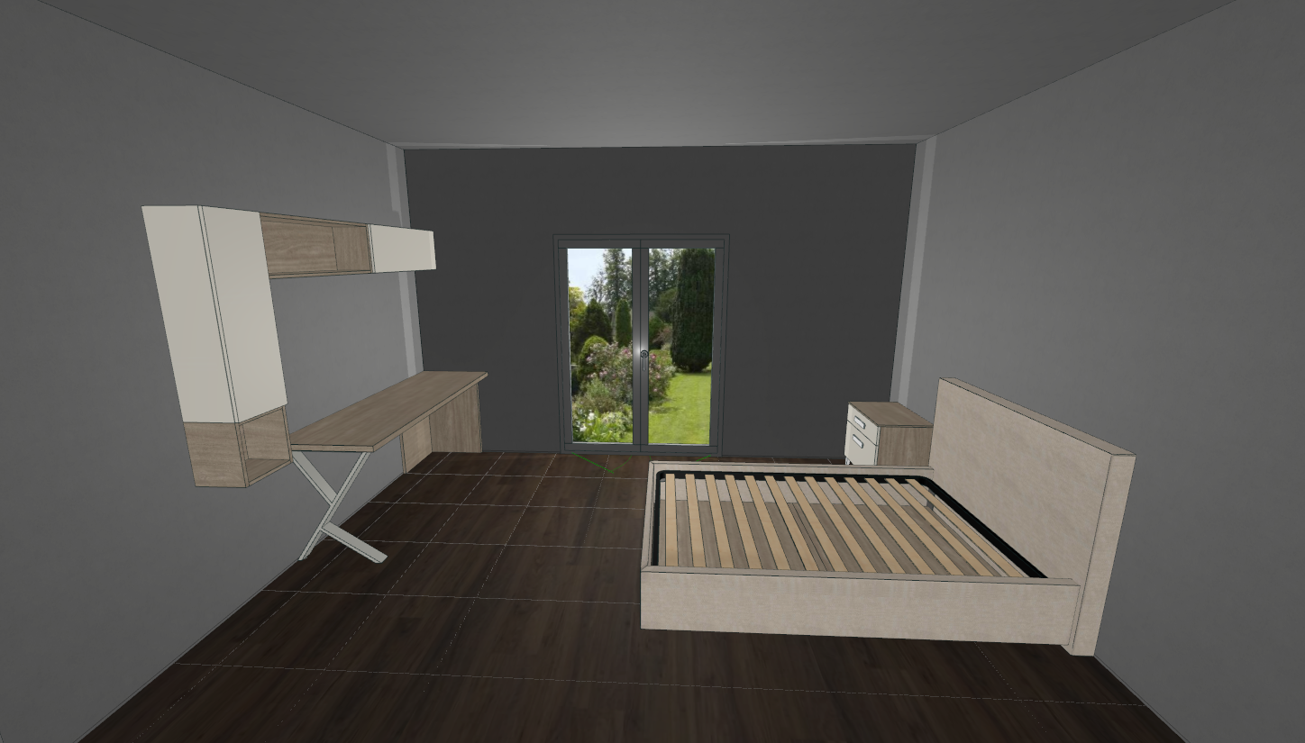 inserisci materassso sulla rete e sedia vicino scrivania