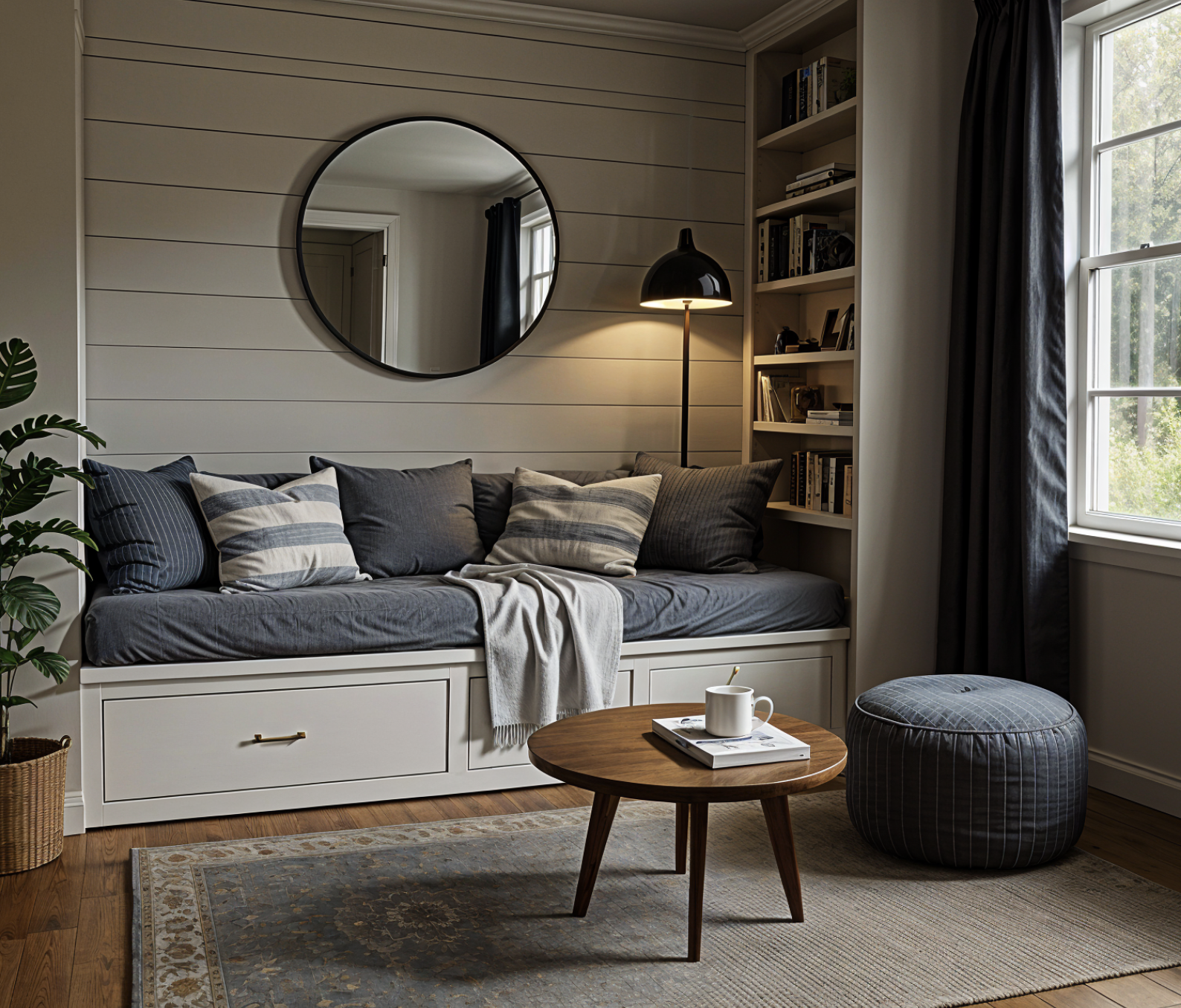 place the floor lamp next to the window in front of the bed make lamp less shiny