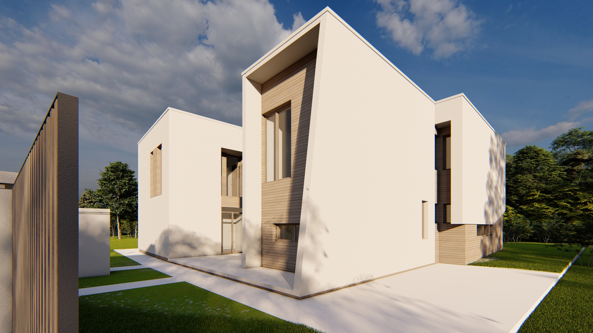 refine the sky and the light without changing the textures or the architectural elements add a lush clean grass and a very few small bushes that don t cover the building