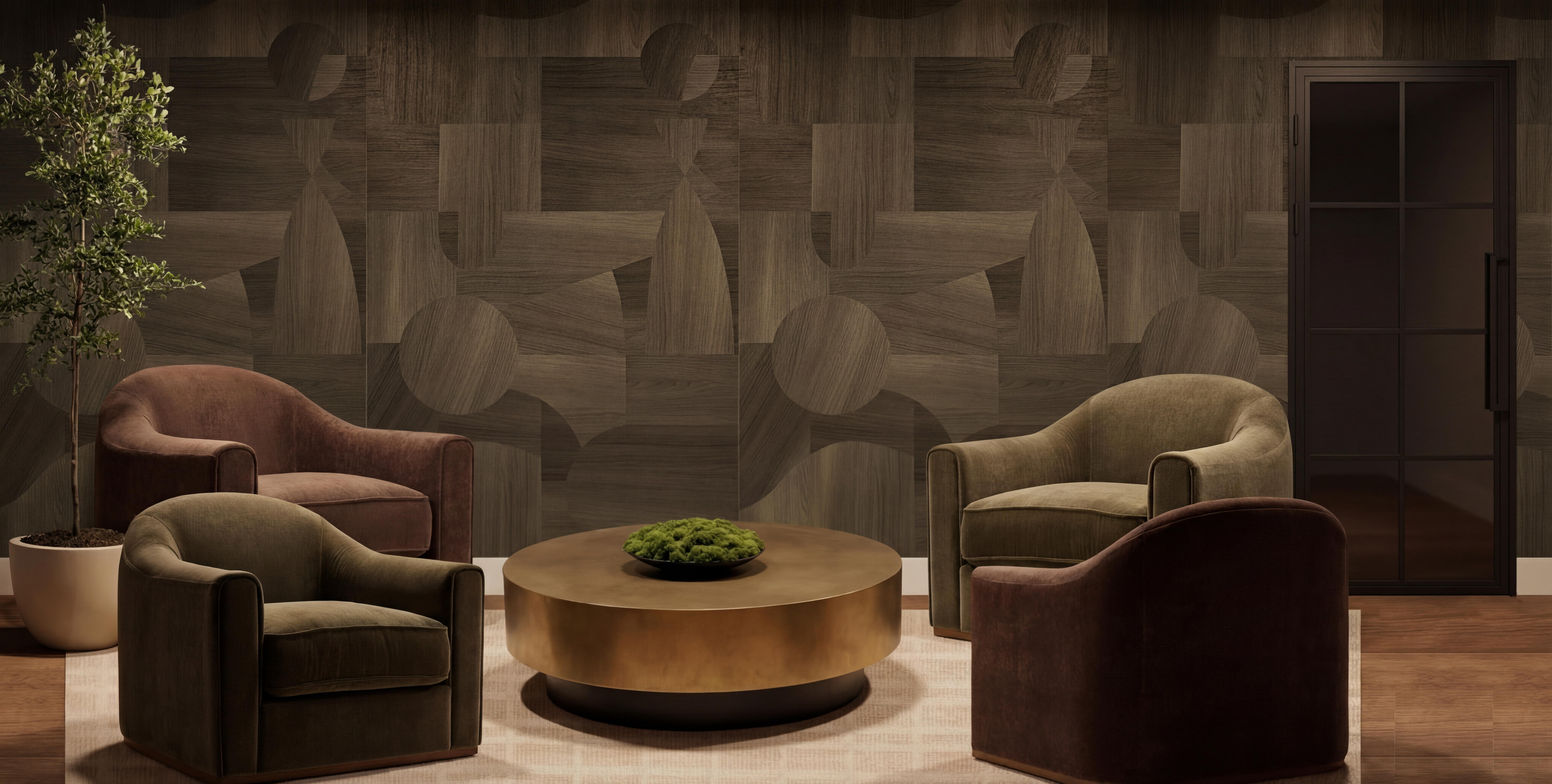 render the image in a photorealistic output maintain the color add realistic landscape on the perimeter of the buildings output should looks like a real estate photograph not a 3d render