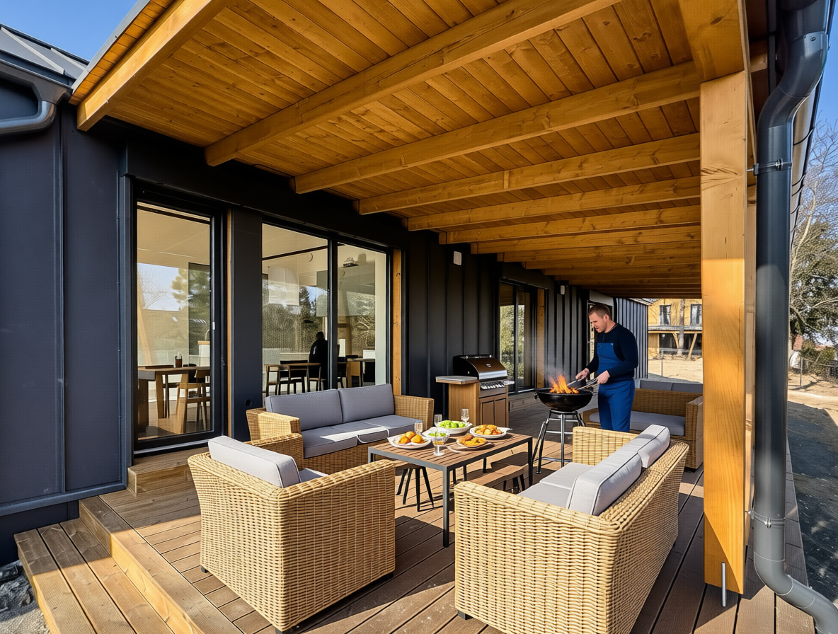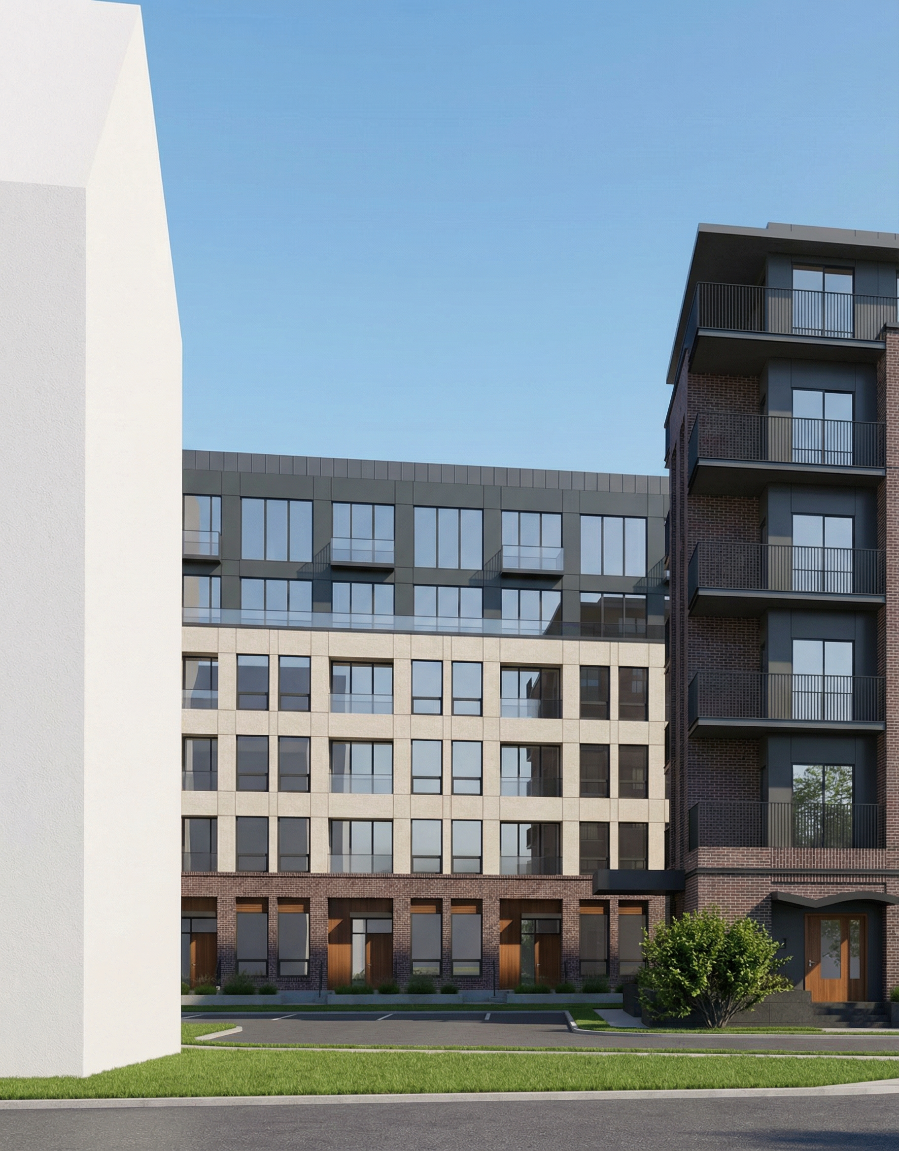 maintain the lower portion and redesign the upper portion as a modern loft with a flat roof the center window should be a bow window