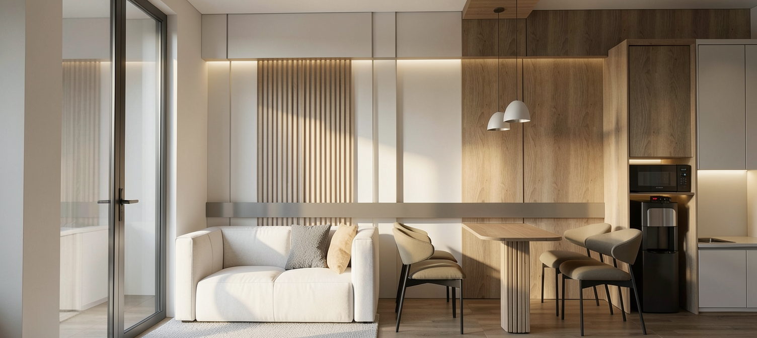 exterior shot interior shot photorealistic render of a entrance lift lobby design colours and floor pattern as is just place furniture inside rendering