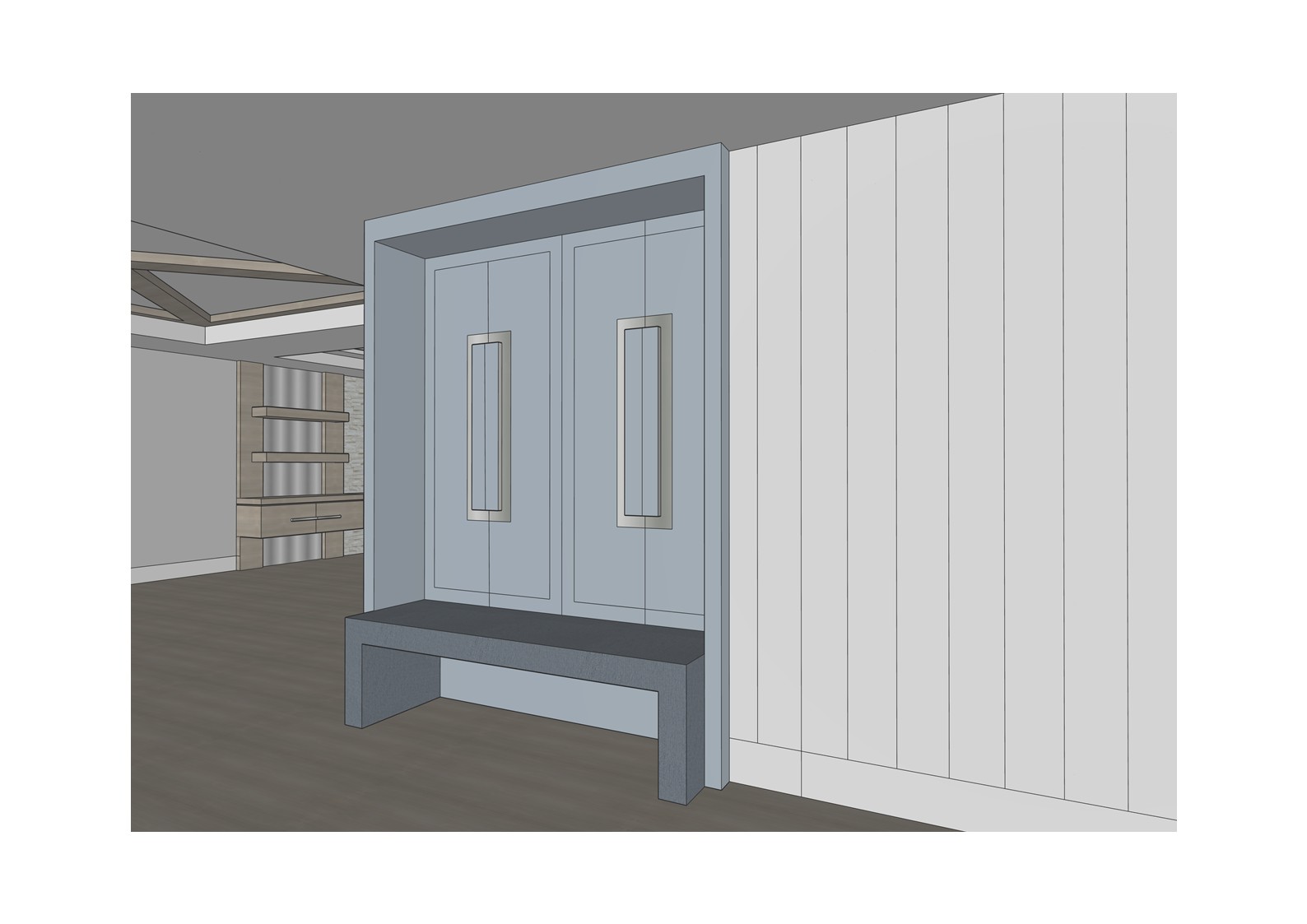 transform the provided elevation into a hyper realistic interior photograph that is indistinguishable from a real professionally shot interior design photograph this must read as a real space captured by a camera not a rendering not a visualization not architectural cg not concept art and not an illustration geometry lock non negotiable preserve the exact original geometry layout proportions ceiling details wall depths panel divisions openings doors cabinetry locations millwork dimensions built ins and circulation paths with zero architectural changes nothing may move scale simplify or be reinterpreted geometry must remain absolutely unchanged camera derivation critical derive the camera position height angle and framing strictly from the uploaded elevation eye level interior photography centered or naturally balanced composition 24 35mm interior lens feel no dramatic angles no stylized framing do not reuse or approximate camera framing from any previous image remove all drawing artifacts completely remove all linework cad edges drafting outlines diagrammatic shapes sketch artifacts nothing may appear outlined flat schematic or illustrative the elevation must be visually reinterpreted as a finished real interior photograph material realism rules wood if present smooth solid plank material extremely subtle restrained grain matte or soft satin finish only no graphic patterns no decorative striping no visual noise wood must absorb light gently never glossy or sharp fabric upholstery if present soft compression subtle seams gentle shadowing natural fabric texture no flat color blocks stone slabs if present light natural veining soft organic variation low contrast no symmetry no bold or busy patterns stone must feel heavy and grounded walls fine surface texture slight tonal variation never flat paint edge construction realism all edges corners joints and transitions must be softly broken and physically realistic no razor sharp corners no cgi perfect edges slight construction tolerances only everything must read as fabricated installed and dimensional lighting photographic behavior lighting must behave like real high end interior photography natural daylight only unless otherwise specified realistic light bounce gentle shadow falloff uneven exposure distribution subtle brightness variation across surfaces avoid studio lighting uniform illumination over clean exposure global illumination look slight softness is preferred over sharpness camera image imperfections very important introduce subtle photographic characteristics gentle lens softness micro exposure variation natural contrast roll off mild atmospheric depth primary plane sharp background slightly softer the image must feel captured not generated absolute constraints no creative interpretation no stylization no exaggeration no added or removed elements any deviation from the original elevation geometry or intent is unacceptable negative prompt always include architectural rendering 3d visualization cgi unreal engine octane vray sketchup look flat textures graphic lines outlined edges over sharpened studio lighting concept art illustration ai look plastic materials glossy wood high contrast grain perfect symmetry keep design as shown in the picture keep the design as it is in image light cabinets are white and brown cabinets are white oak keep design in the image as it is