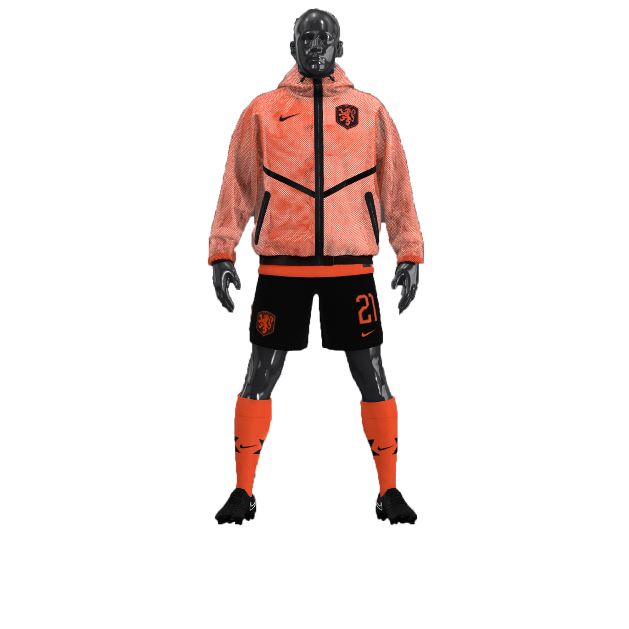 keep the jacket shorts socks and shoes as it is keep the original colors but the model is a marble statue from the ancient greece shoes have to be black keep the original colors of the clothes jacket must be same color of the original image shorts are black like original picture socks orange colors must be same hue and saturation as original picture clothes must be spotless black background