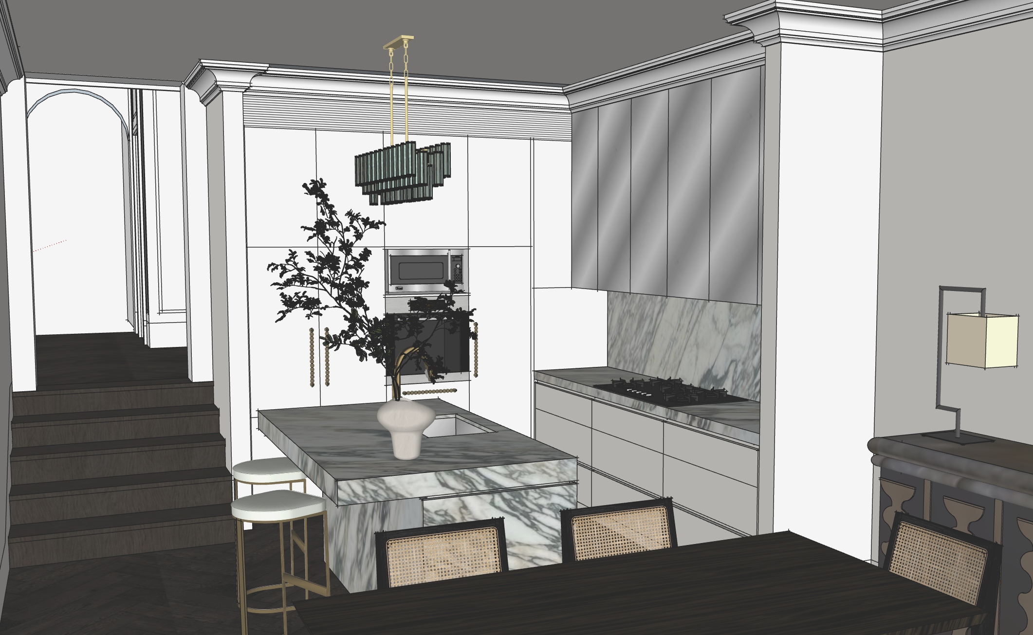 remove cornice and make p50 shadow set ceiling replace window with a arched white traditional front door take kitchen joinery to the ceiling straighten render so looks better