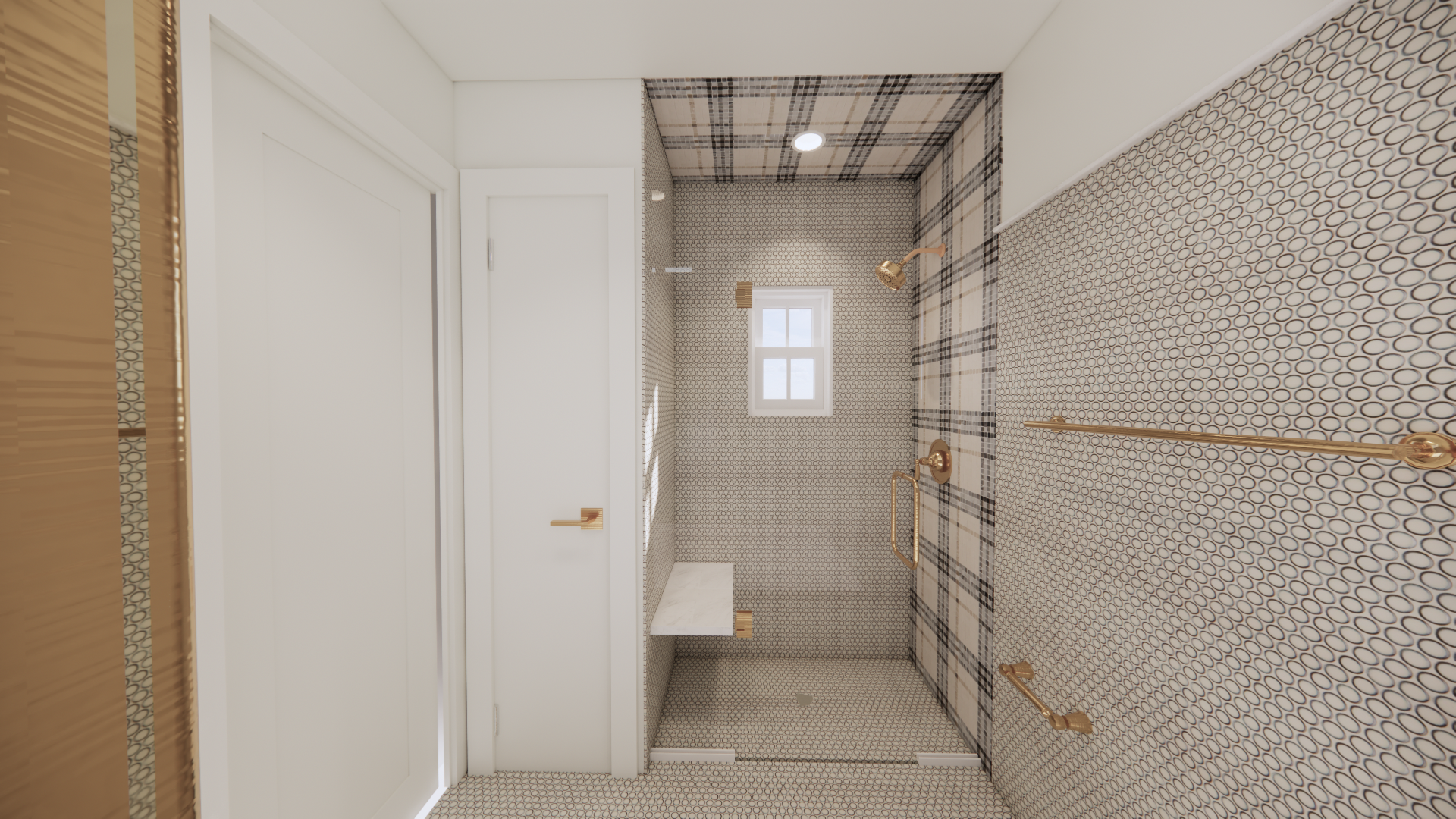 create an hdri photo realistic rendering from my image do not change any image details do not move or modify features keep the colors the same make the rendering photo realistic with 4k resolution add natural sunlight facing left shower wall