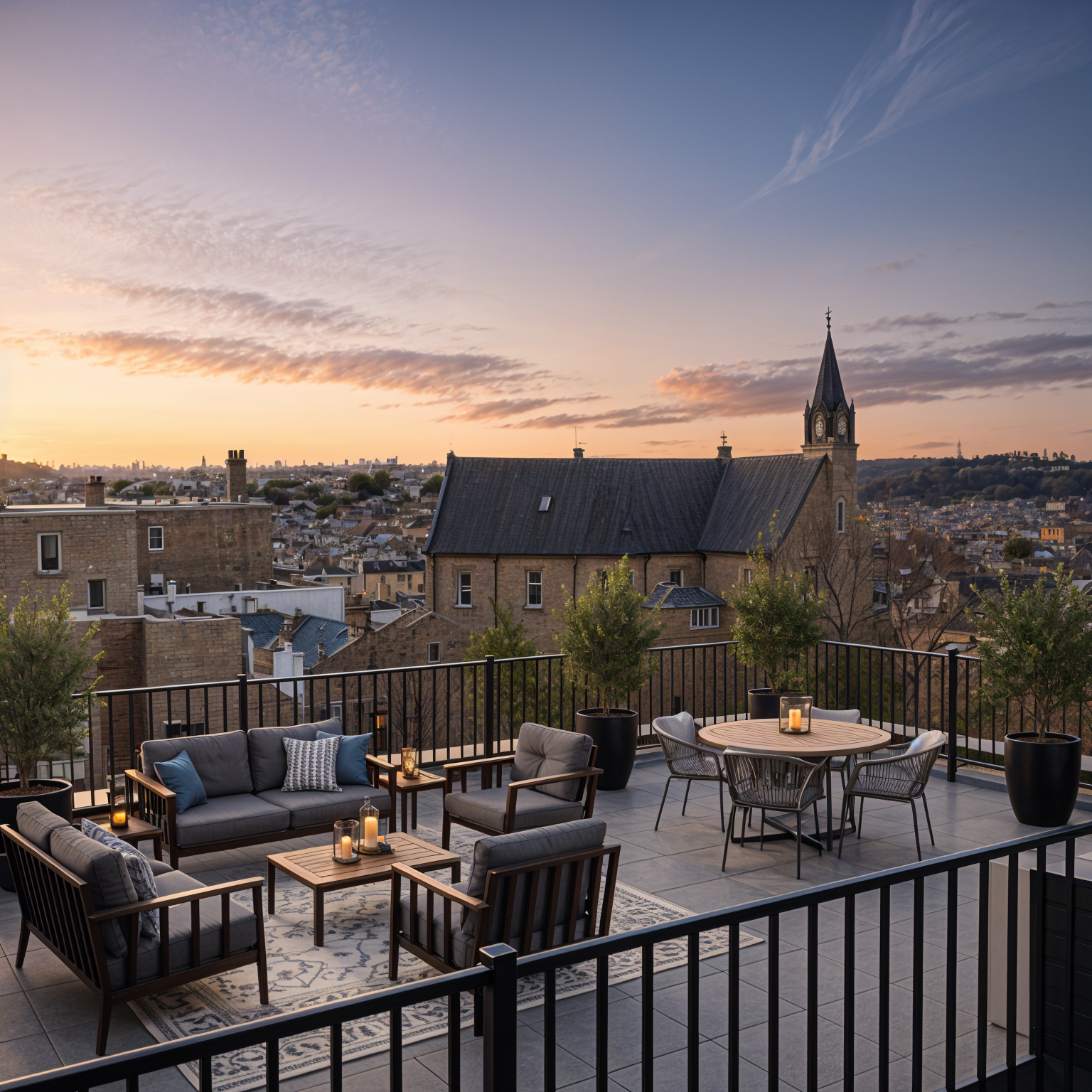 exterior shot wooden floors painted warm pale yellow cabinets green tile