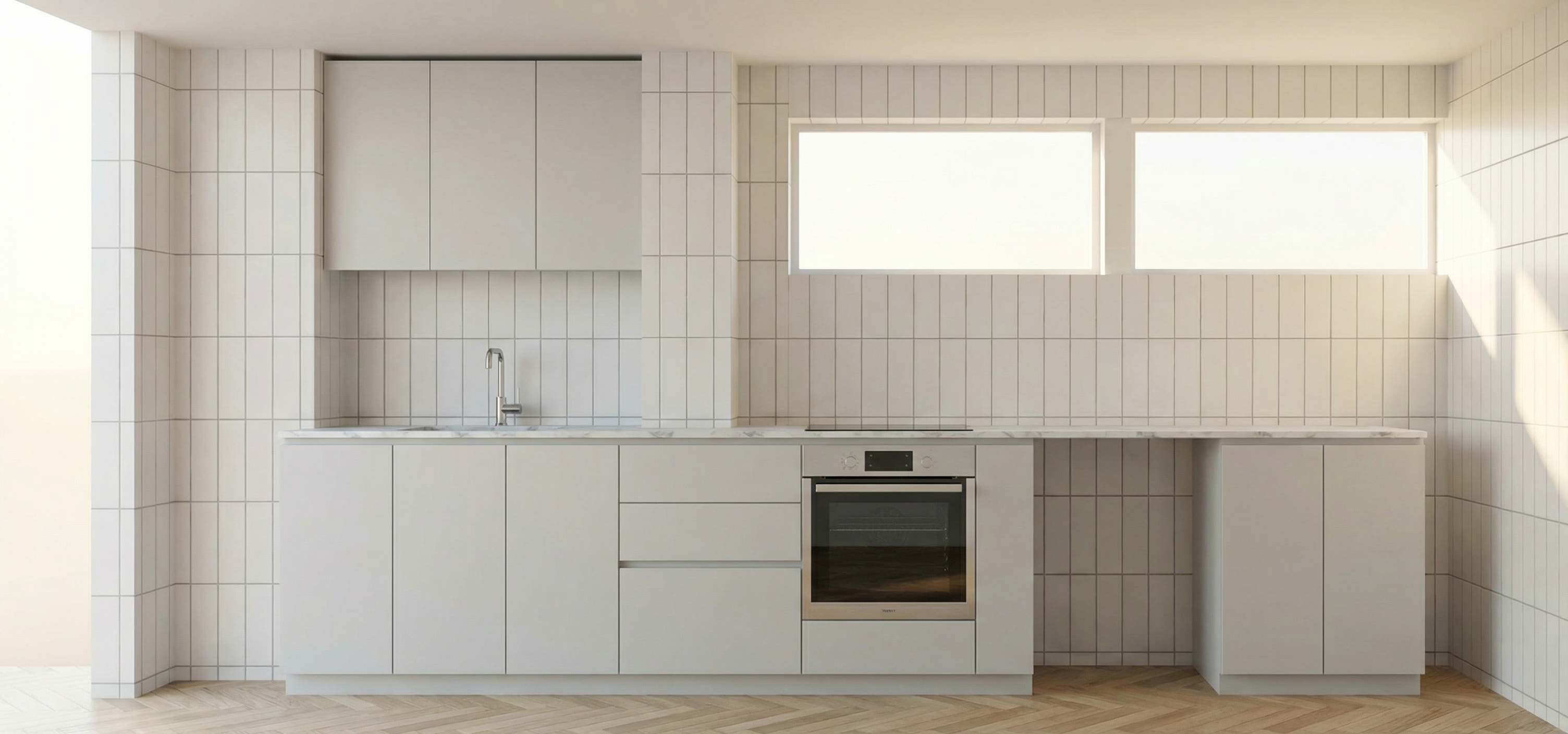 matte white ceramic wall tiles 30x10 cm installed horizontal
