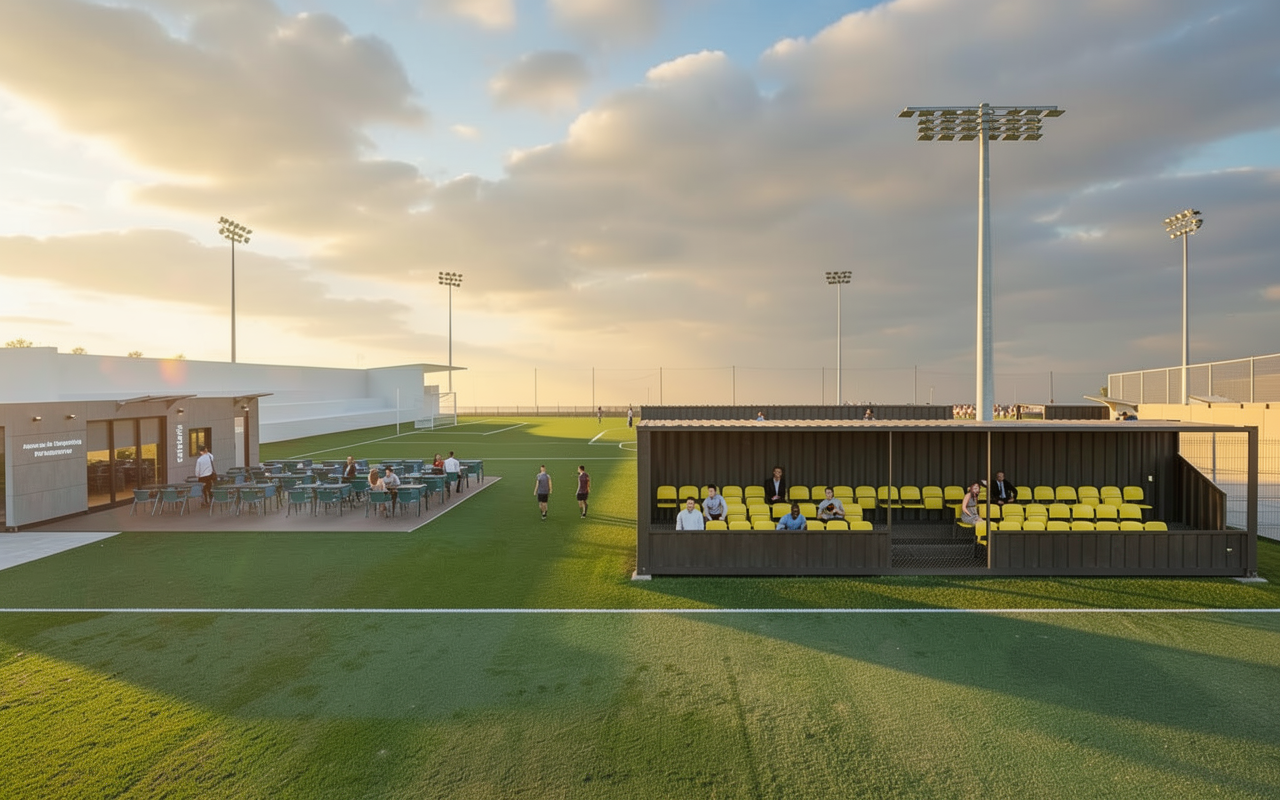 photorealistic interior polished concrete floors white walls and light metal orange finishes the space is lit up with soft ceiling can lights bright lighting and overall environment is soft bright lighting
