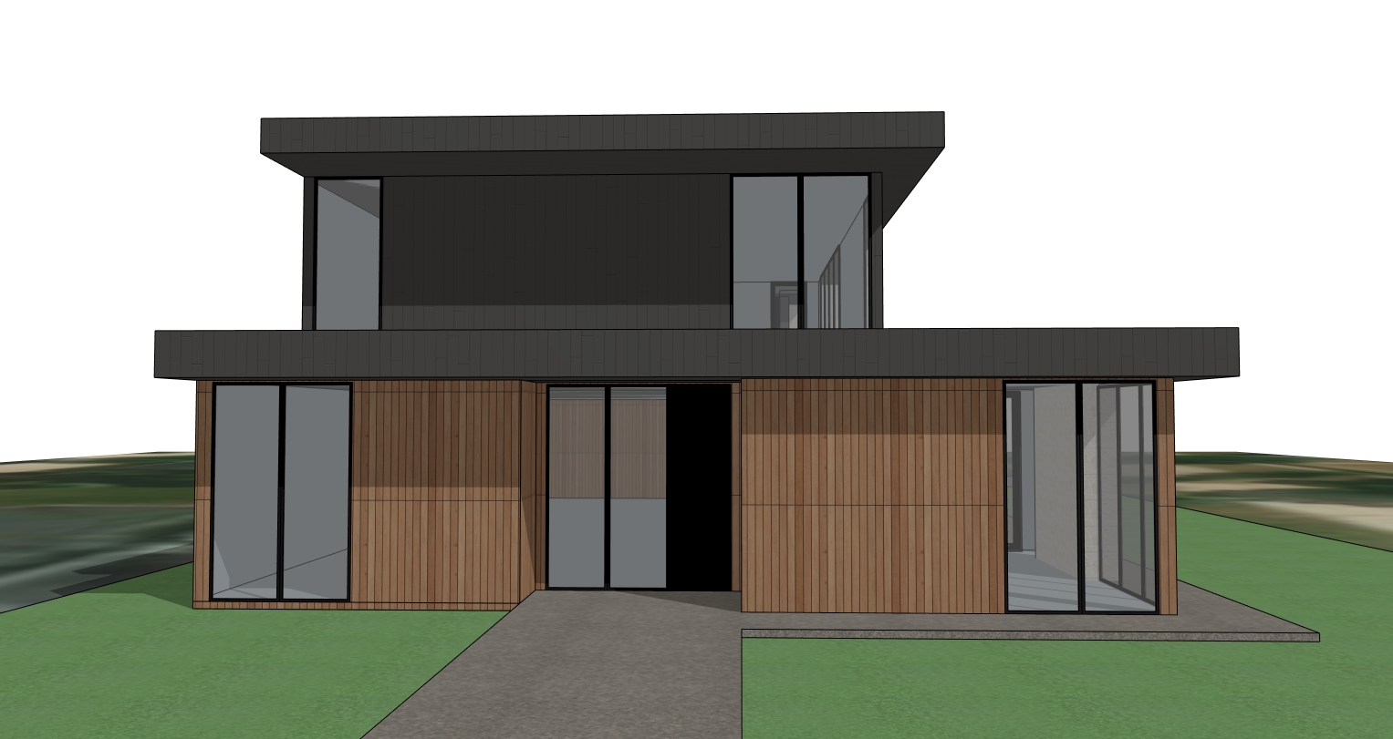 home is in a mature uppscale residential neighbourhood amongst large older homes there are a handful of very large mature oak and elm trees in the foreground and backgournd setting is just before dusk there should be some very modern short landscaping shown
