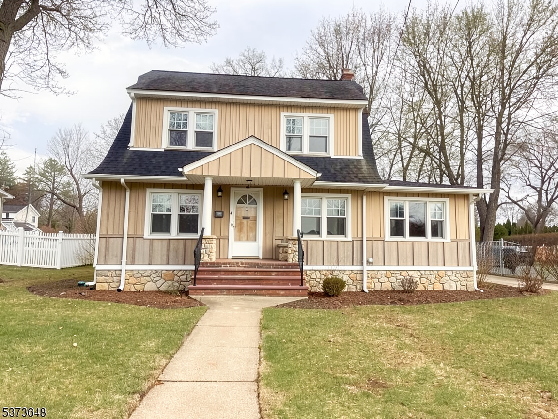 remove all the front landscaping add porch at the same heigh of stair landing to the left and right of the front entry door keep both side to the with of the main structure of the house their are 2 window on the left and right side of the entry door way casement windows about 6ft wide lets replace the siding with a shaker style and a board and batten also add stone to the first floor we will have roof over the new addition porch
