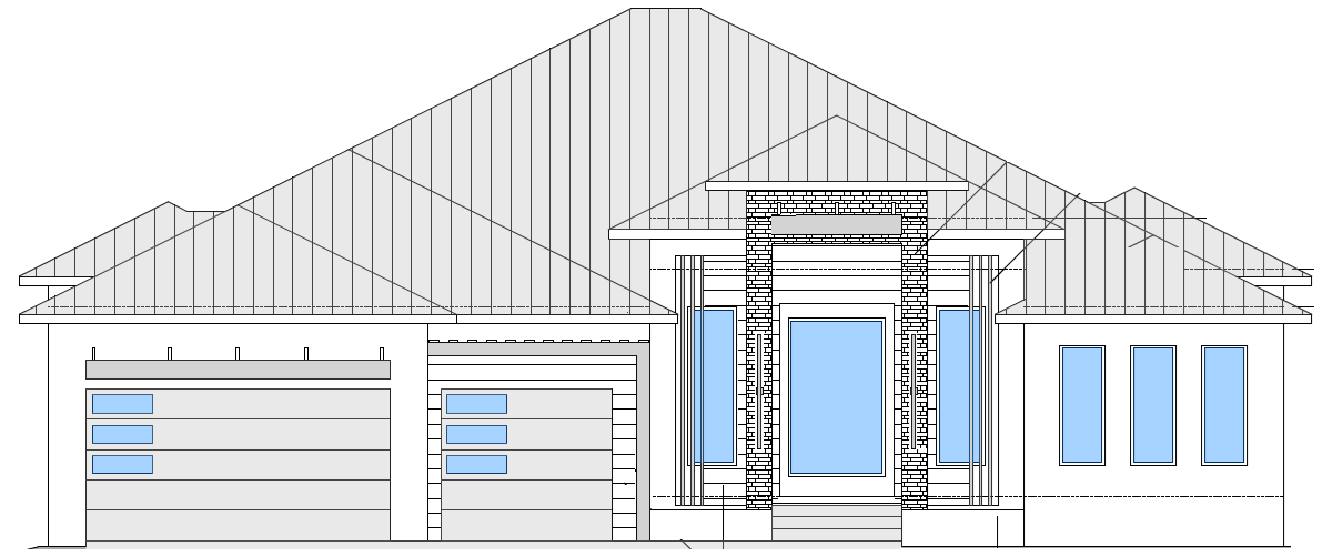 exterior shot wood entry door per drawing gray metal roof stone installation on entry columns white house with gray paver entryway