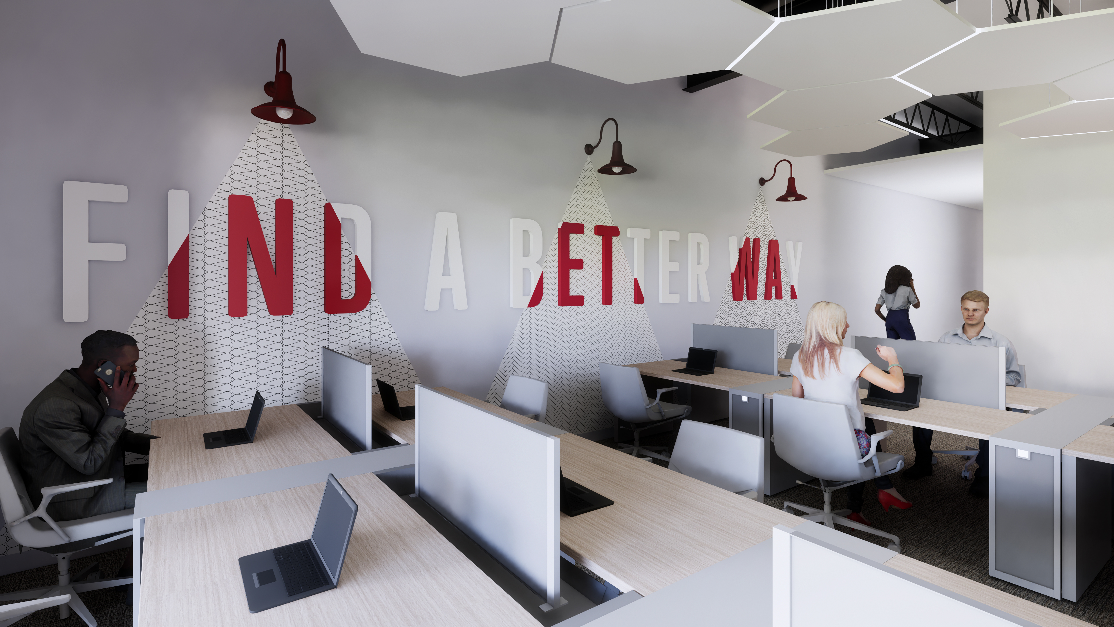 photorealistic interior white wall with a design featuring a combination of images and colors the wall is lit up with soft warm lighting from light sconces on wall and overall environment is soft bright lighting